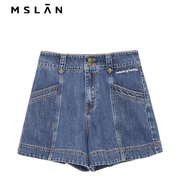 the MSLAN 23夏双扣绣字高腰牛仔短裤