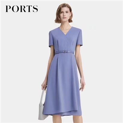 >>宝姿雾霾蓝紫不规则叠片连衣裙
