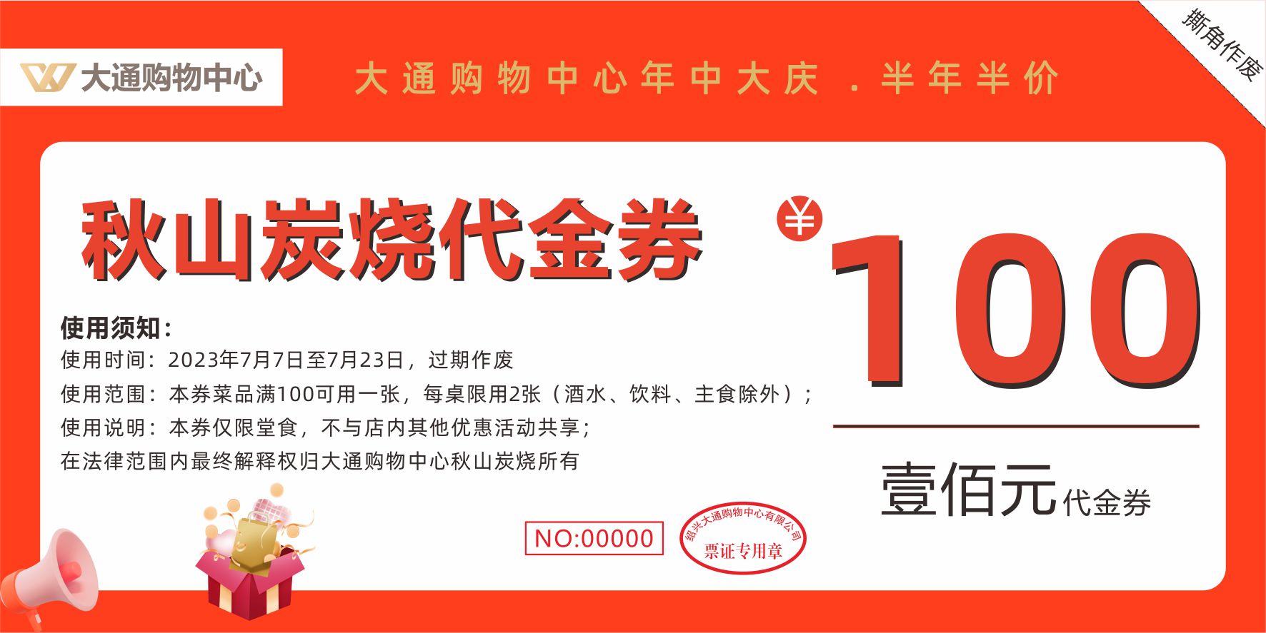 核销地点:大通购物中心负一楼服务台