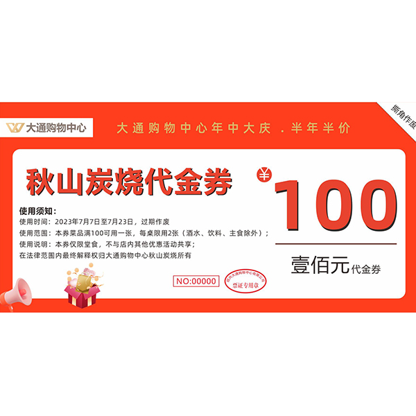 49.9元抢购100元秋山炭烧代金券
