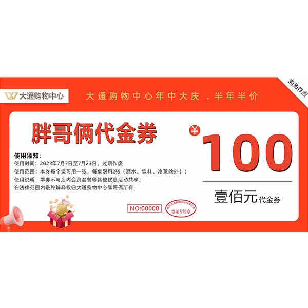 >>70元抢购100元胖哥俩代金券