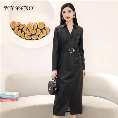 >>马天奴 V领收腰连衣裙