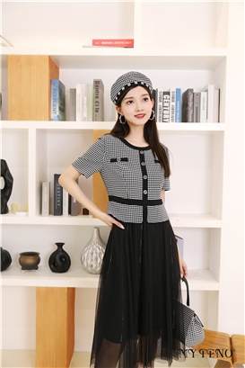 >>马天奴 小香风拼接连衣裙