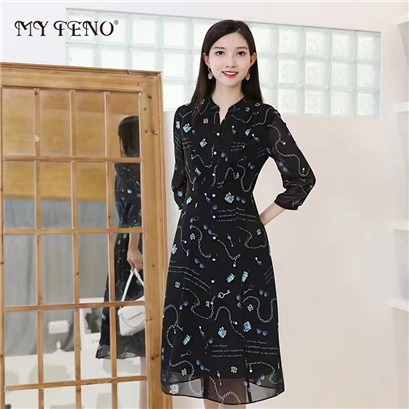 >>马天奴 七分袖收腰连衣裙