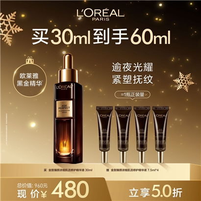 >>欧莱雅金致臻颜浓缩肌活修护精华,买30ml得60ml(立享 4.5折)