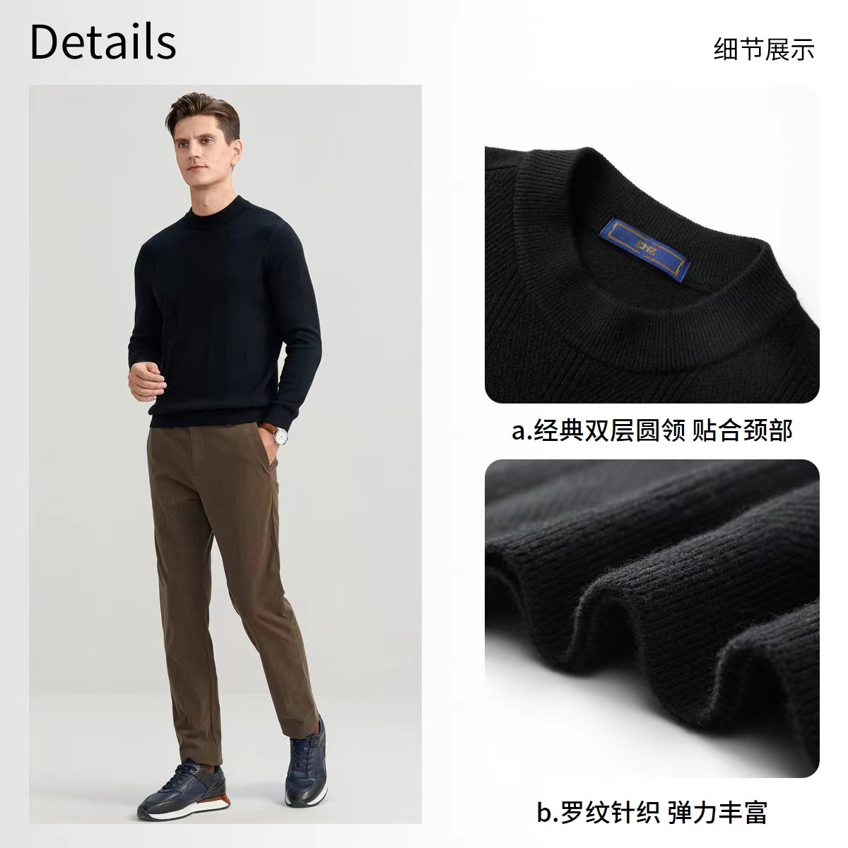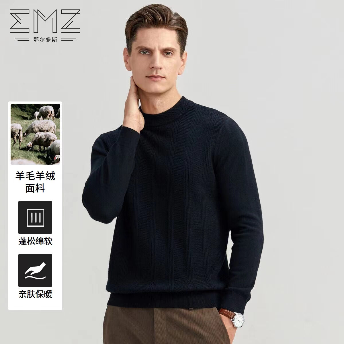 EMZ鄂尔多斯羊毛衫采用美丽诺羊毛,黑色经典又时尚,衣服百搭,手感柔然舒适,包容性号,服帖,保暖性好,冬天必备毛衣