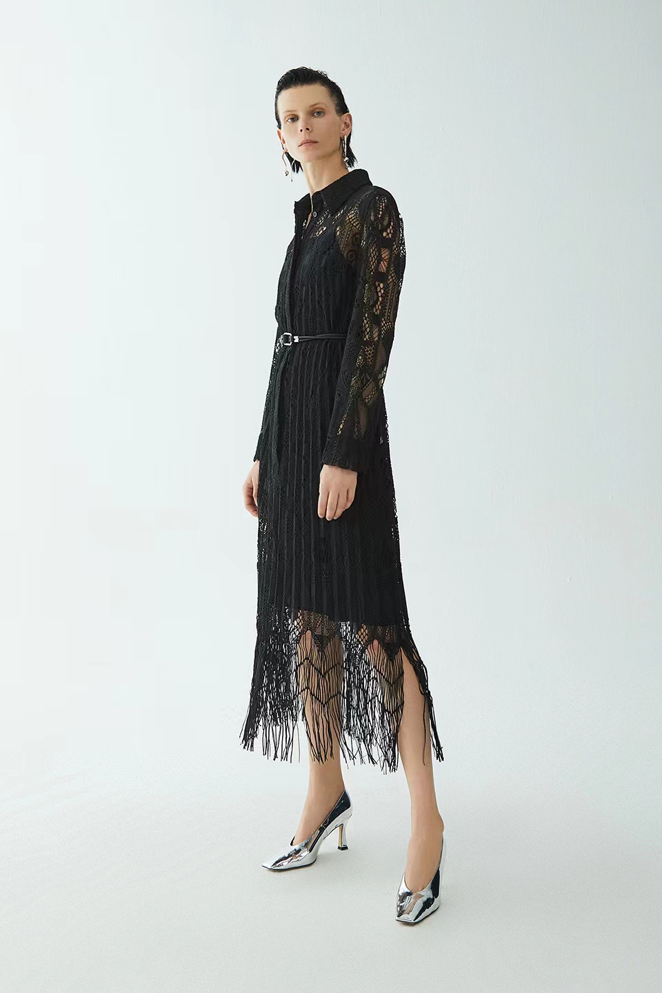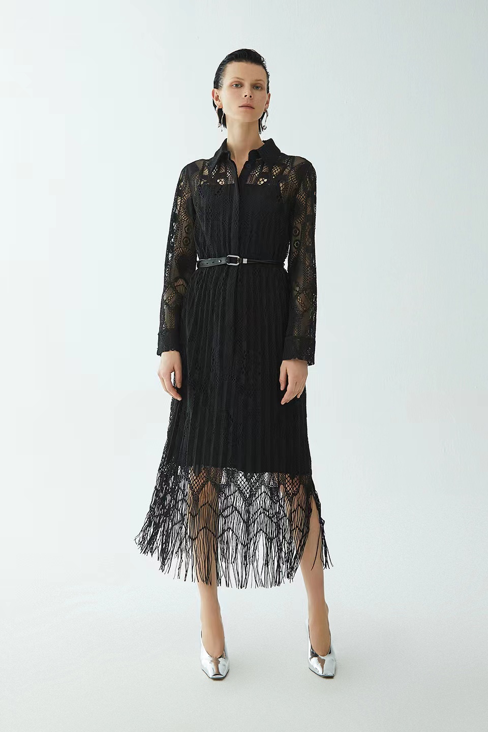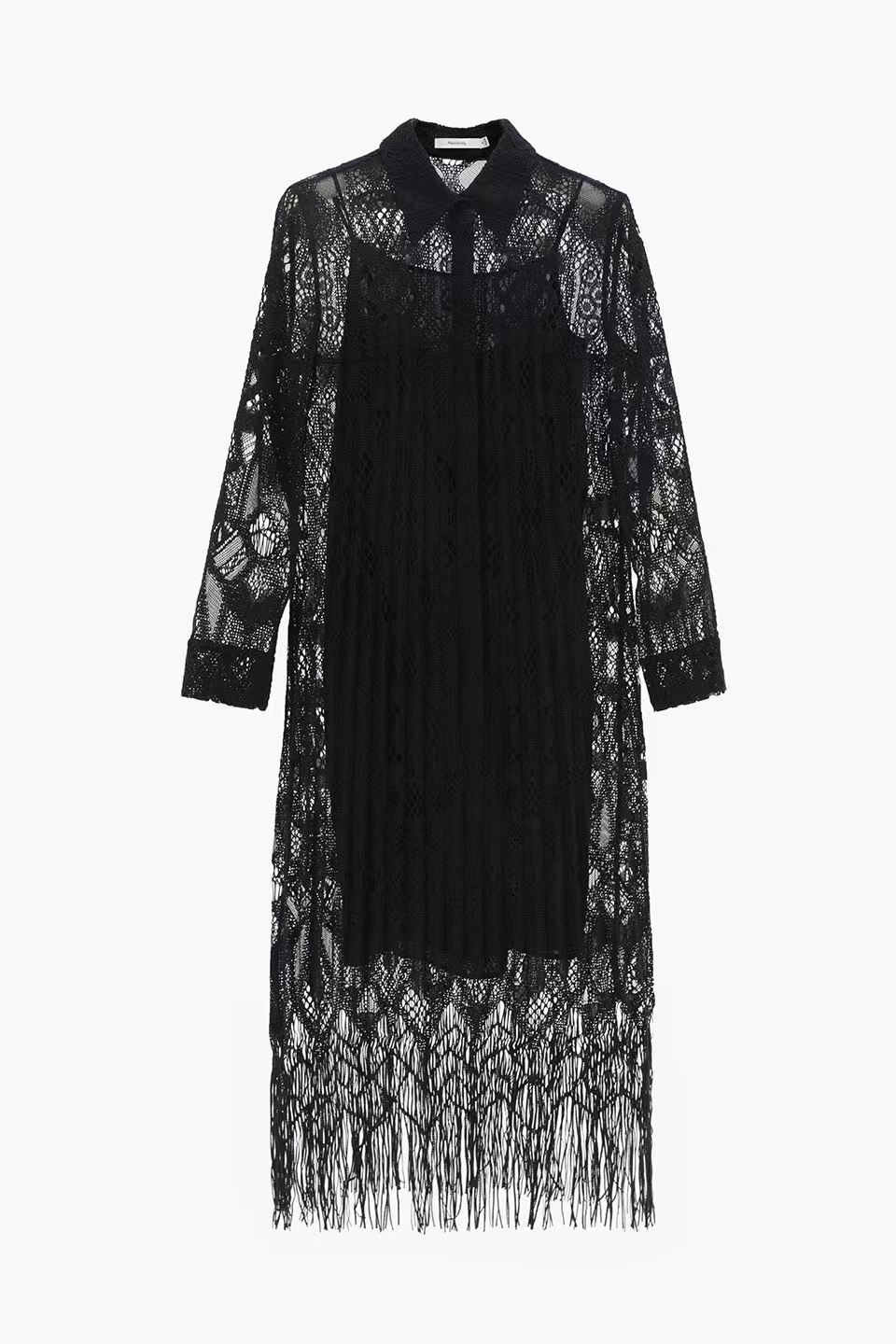 流苏蕾丝长袖连衣裙