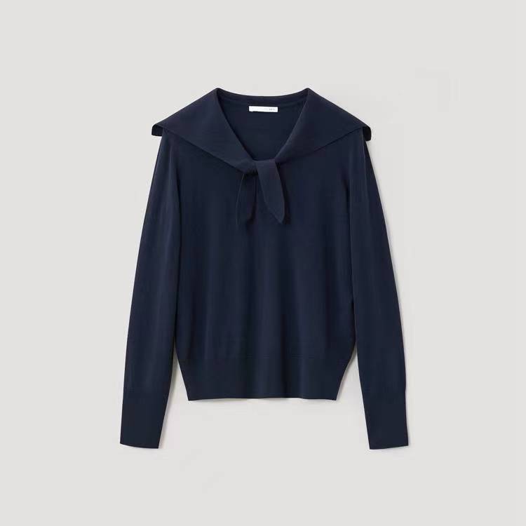 OVV秋冬热卖海军领飘带装饰长袖高支羊毛针织衫