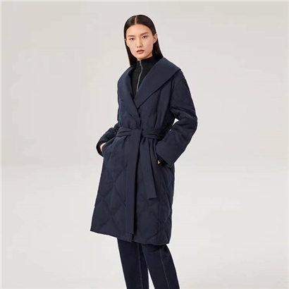 >>OVV秋冬热卖羊毛弹力花呢绗格翻领羽绒服