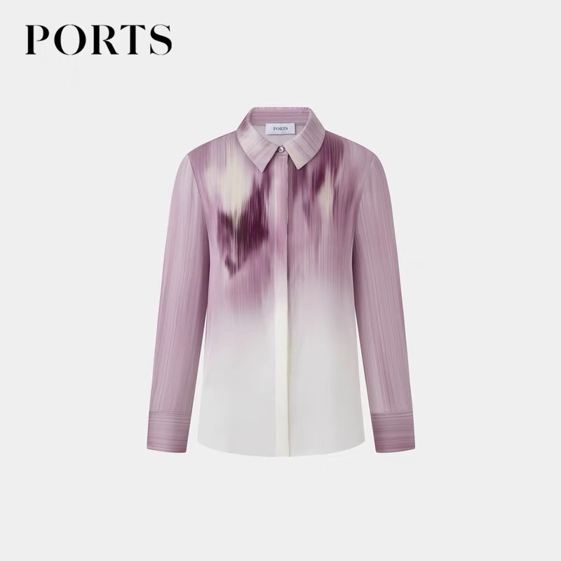 >>时尚高级感“印象鸢尾”印花长袖衬衫