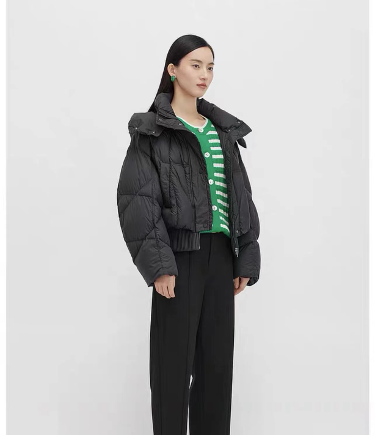 >>播90绒白鸭绒羽绒服短款连帽冬季保暖外套
