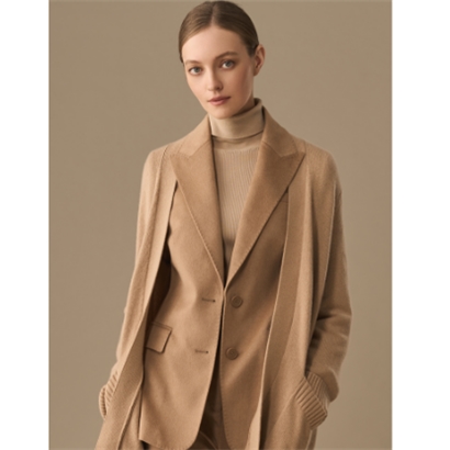三石一澜女装冬季半精纺驼绒素色西服上衣SG45101005