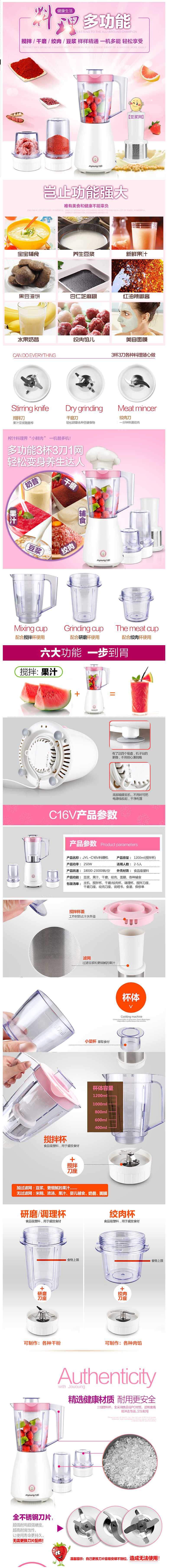 >>Joyoung/九阳 JYL-C16V料理机多功能家用电动辅食搅拌机果汁绞肉