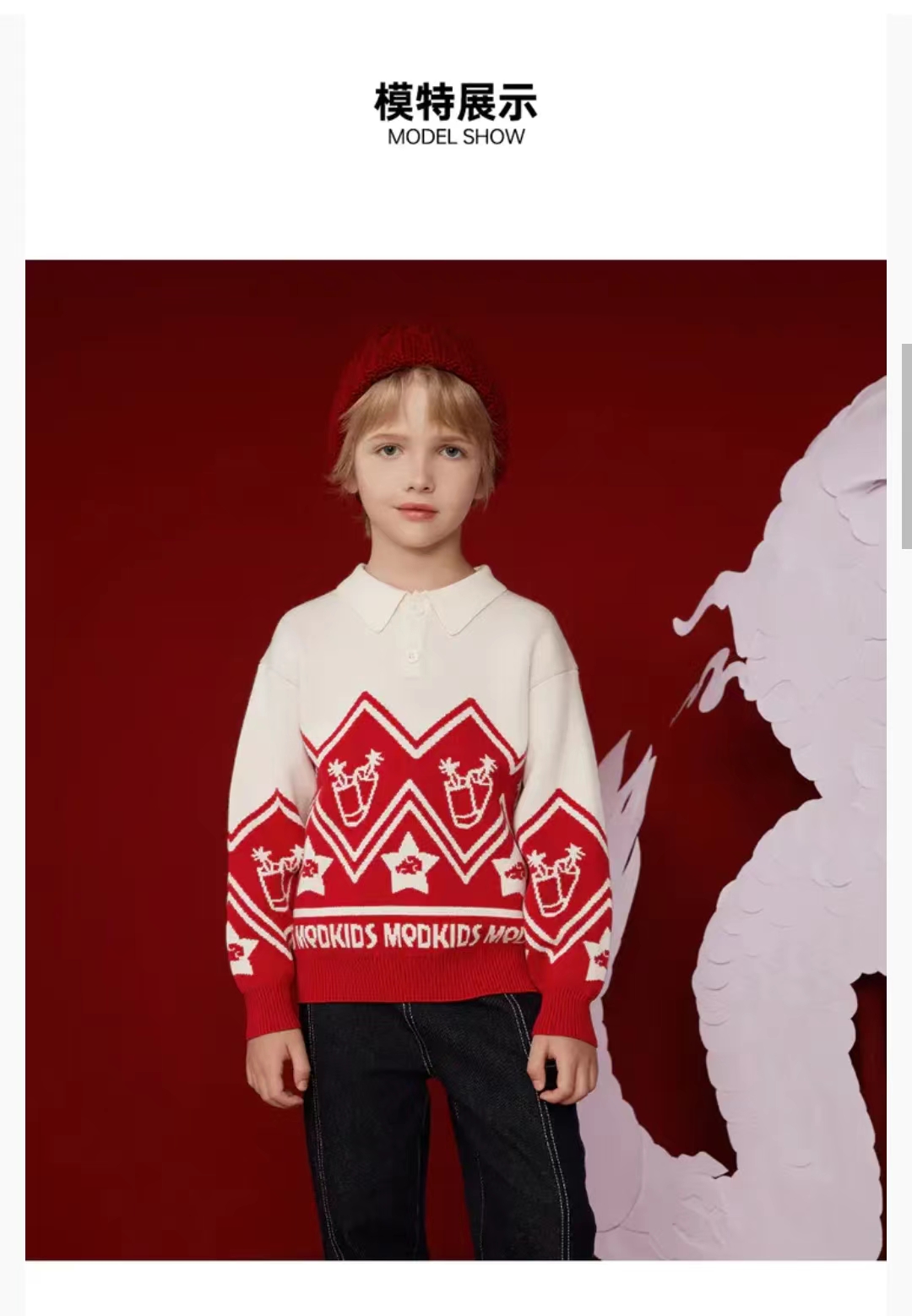 >>马骑顿MQD童装新年龙年国风翻领针织衫