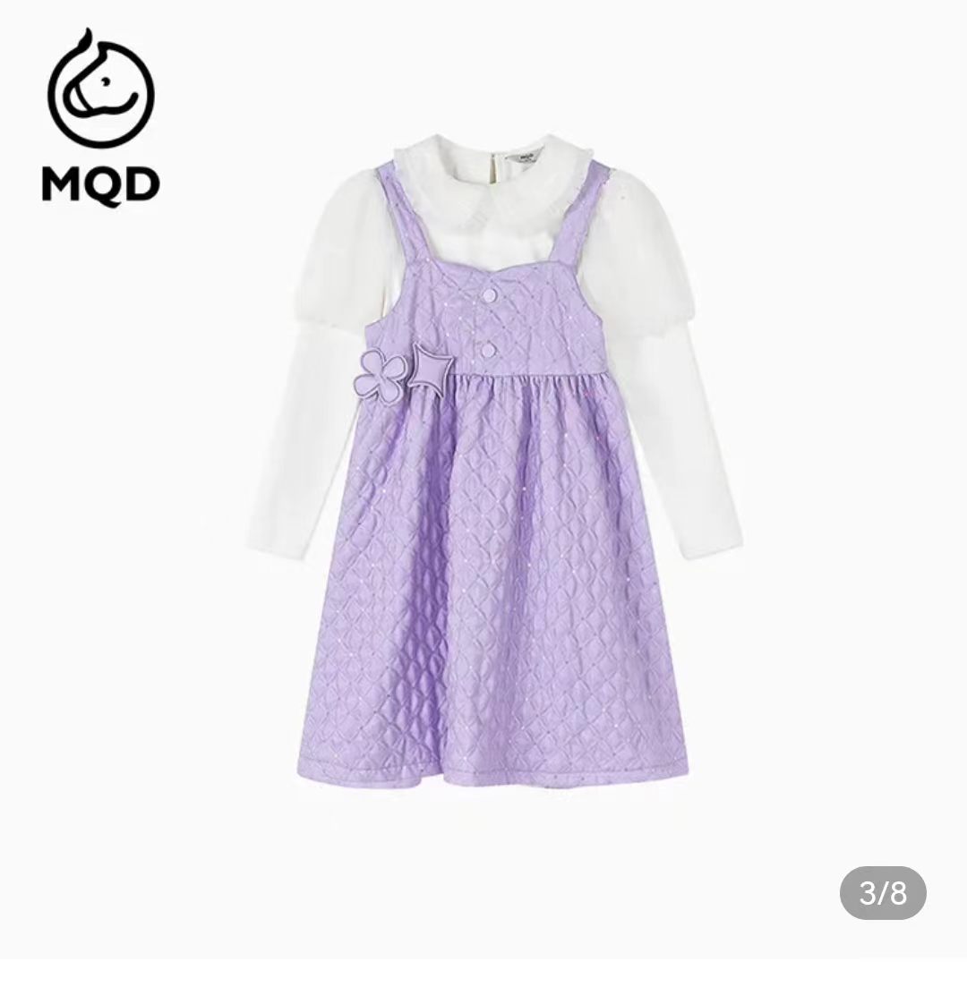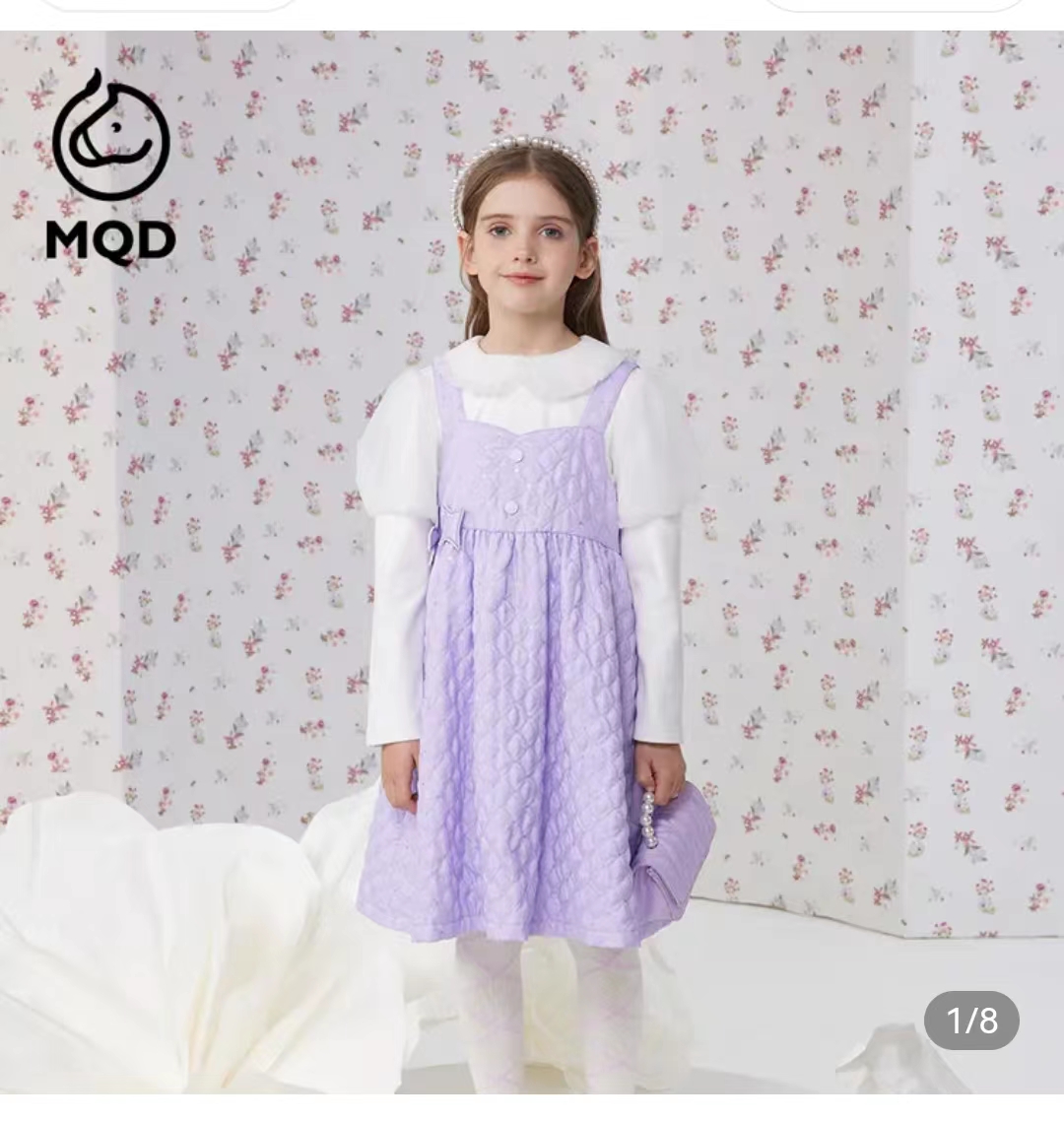 >>马骑顿MQD女童冬季时尚甜美泡泡袖连衣裙套装