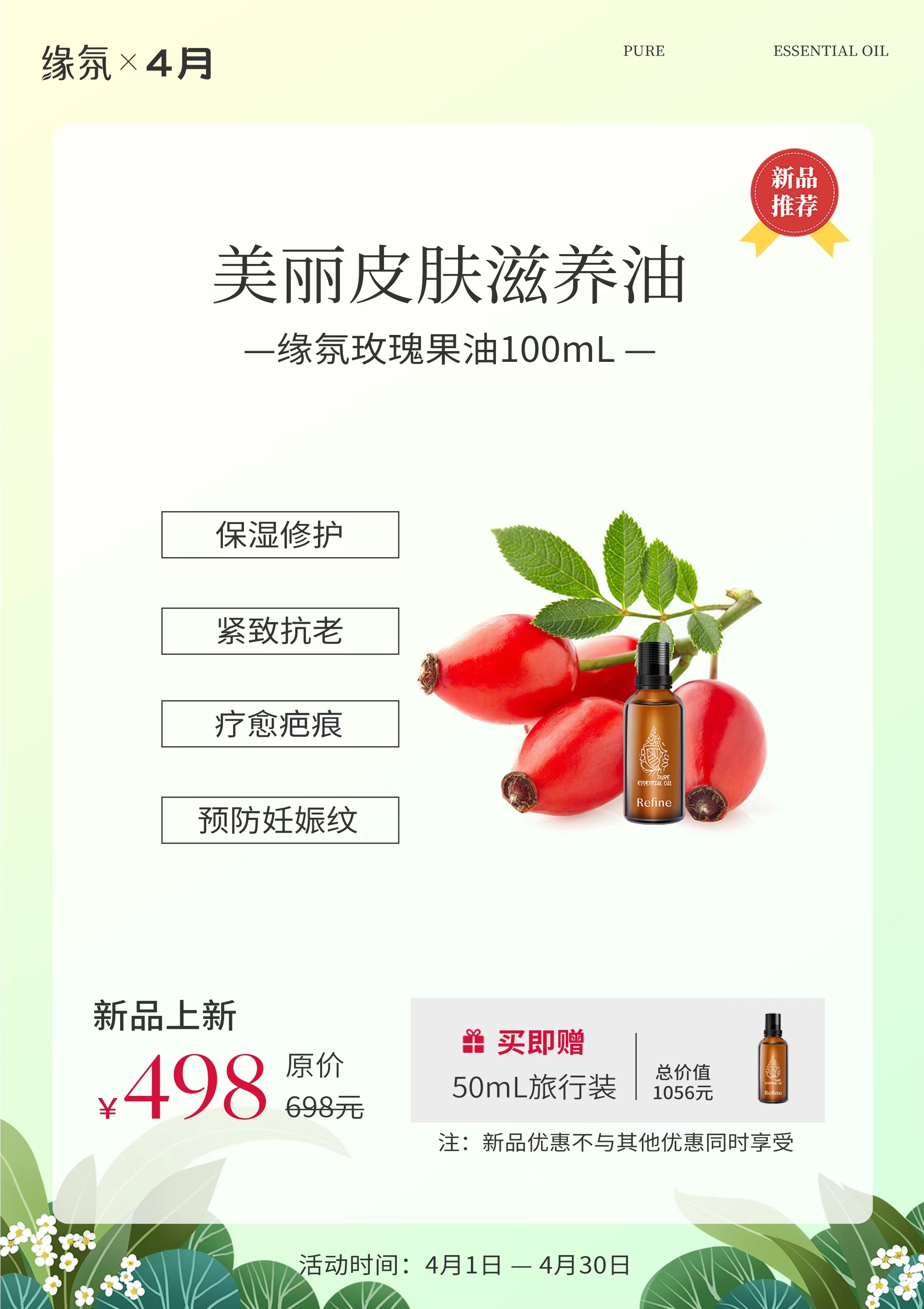 >>缘氛玫瑰果油100ML(柜台自提)