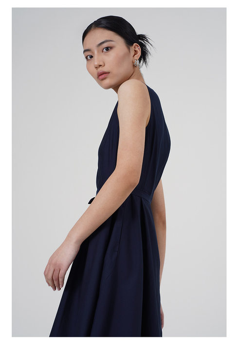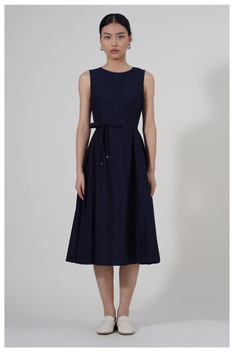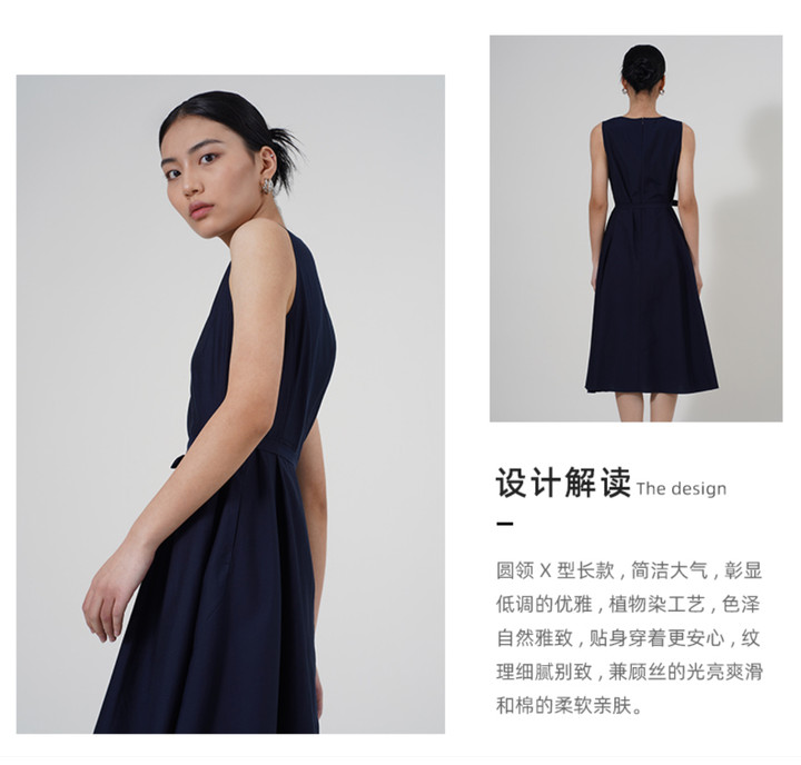 >>三石一澜无袖驼色丝绵通勤连衣裙