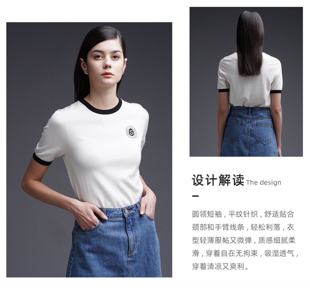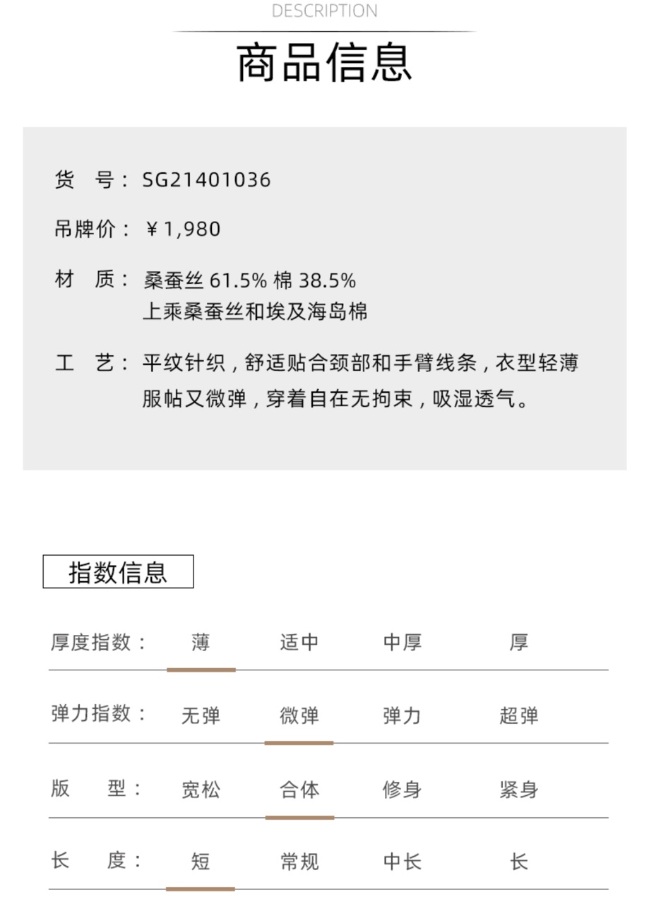 三石一澜圆领短袖平纹针织 桑蚕丝+棉 吸湿透气,清凉