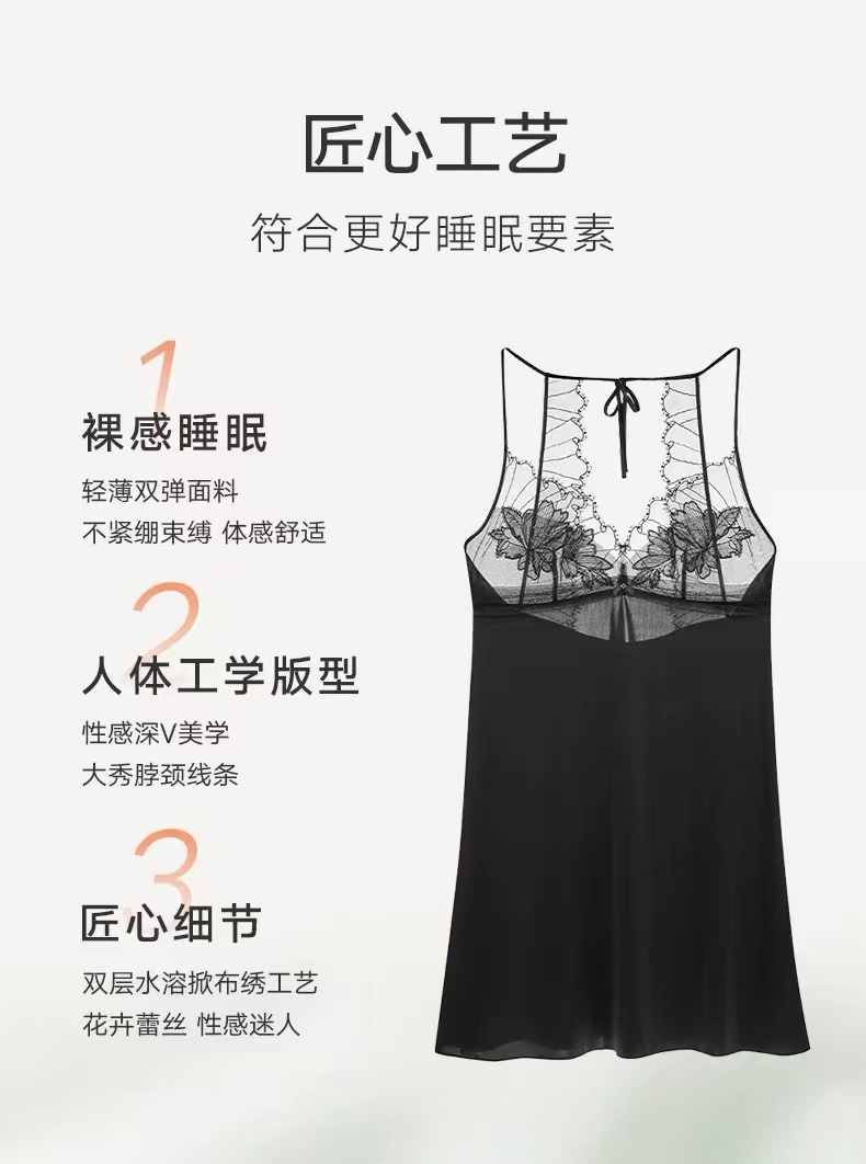 曼妮芬性感轻薄V领蕾丝吊带睡裙