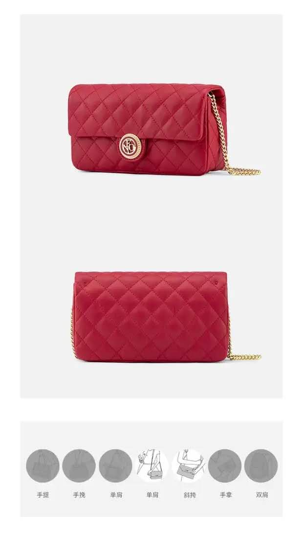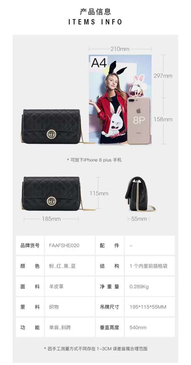 FION菲安妮真皮女包,菱格链条羊皮小方包轻奢品牌斜跨包