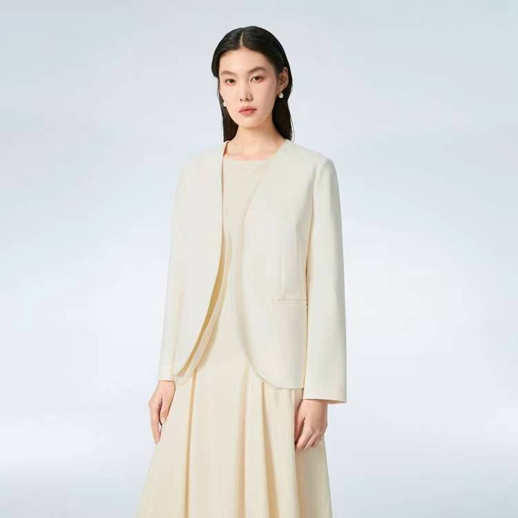 >>OVV弹力舒适假两件欧根纱无领单件西服外套