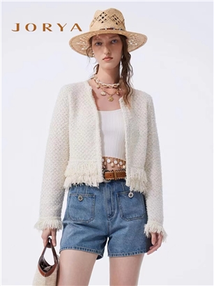 >>JORYA2024新款流苏底摆小香风针织开衫女