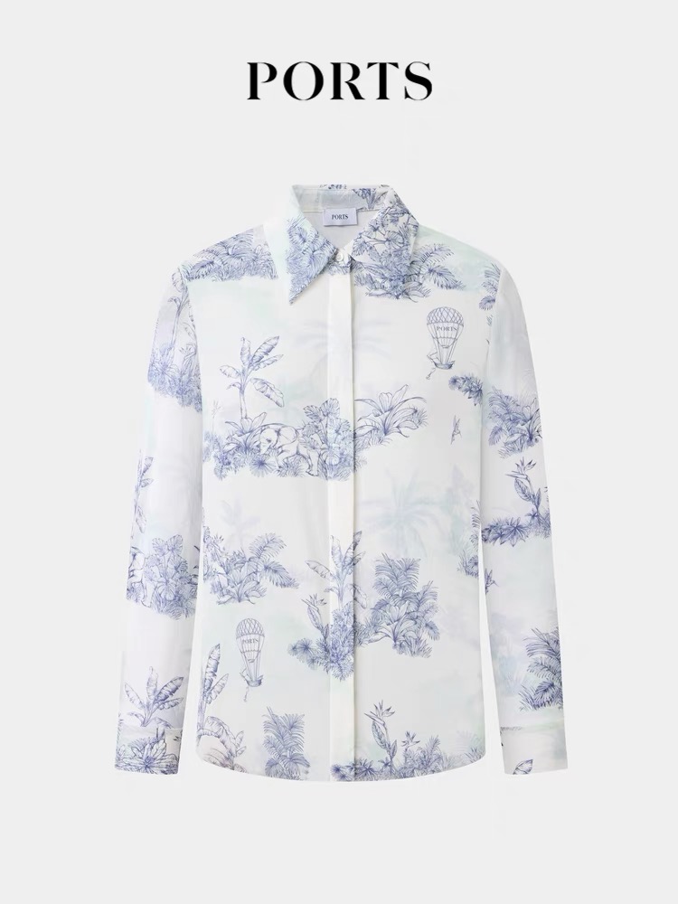 >>宝姿漫游雨林蕾丝刺绣衬衫