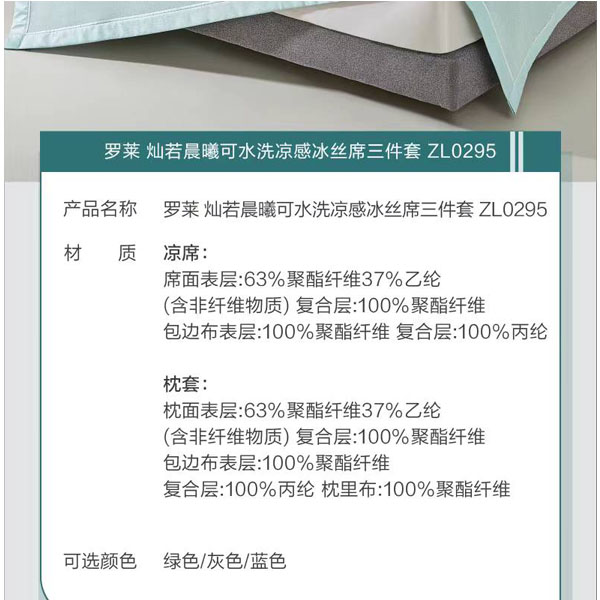 >>罗莱 灿若晨曦可水洗凉感冰丝席三件套