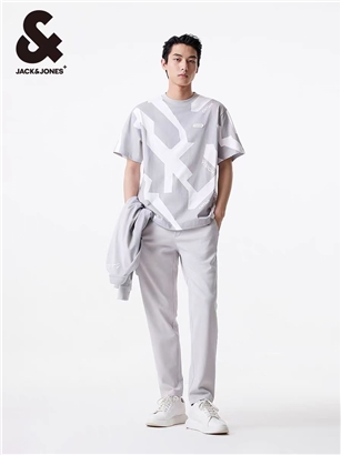 杰克琼斯夏季纯棉撞色线条个性字母满印短T