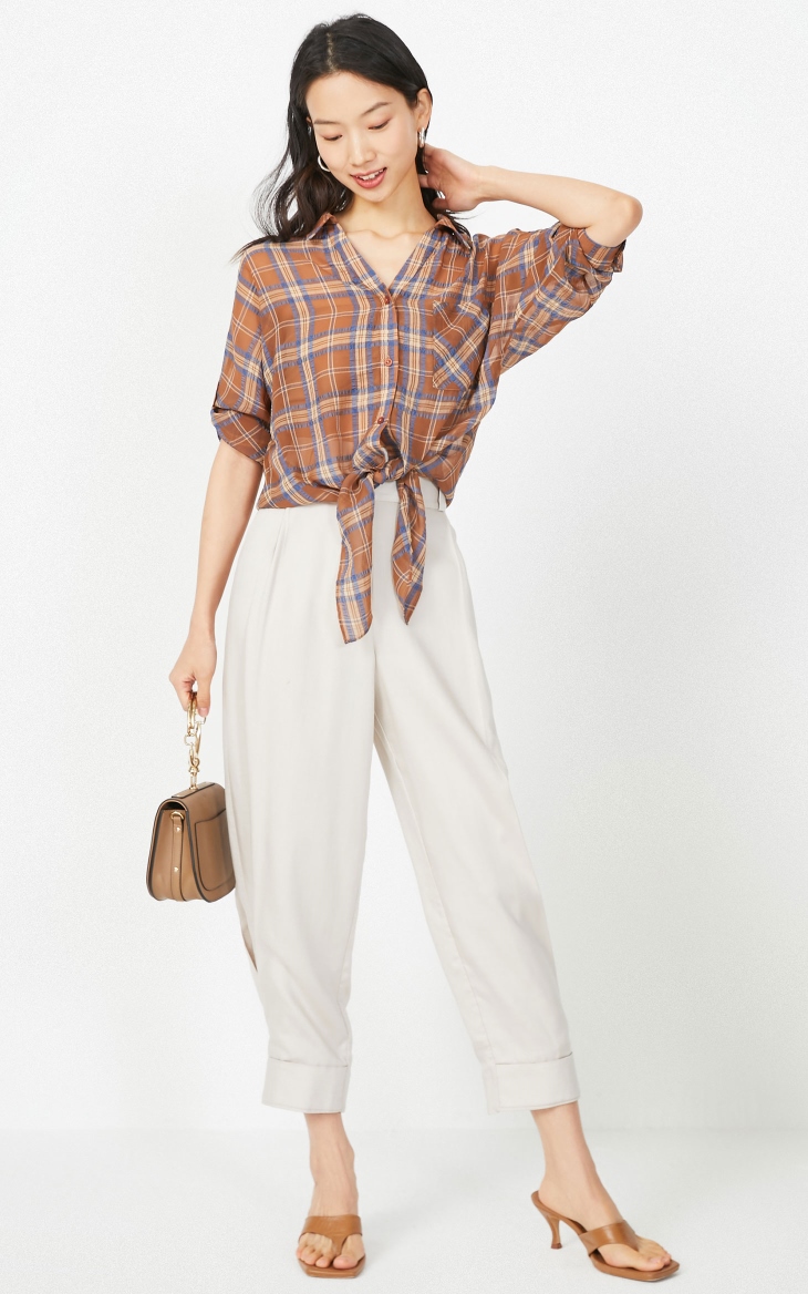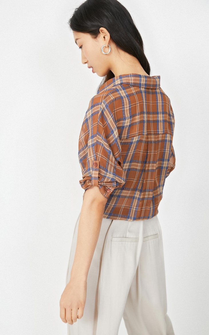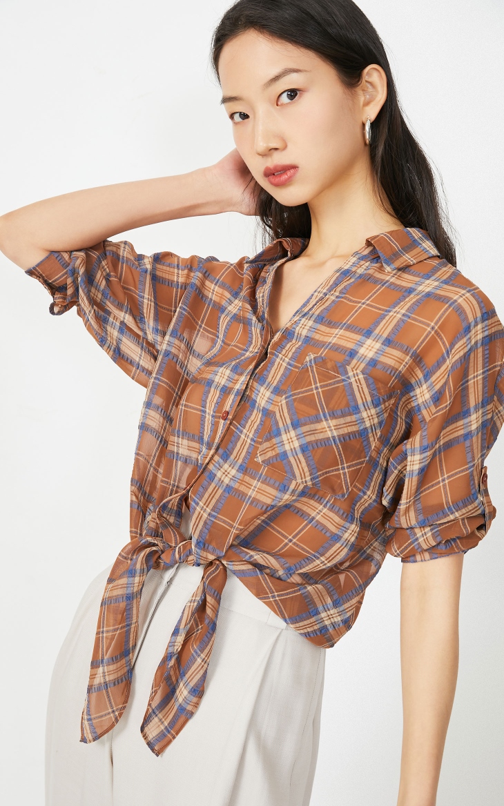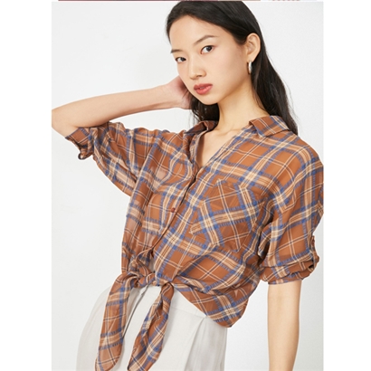 少女装>>Vero Moda2020春夏新款系带底摆透视格纹衬衫|320231579