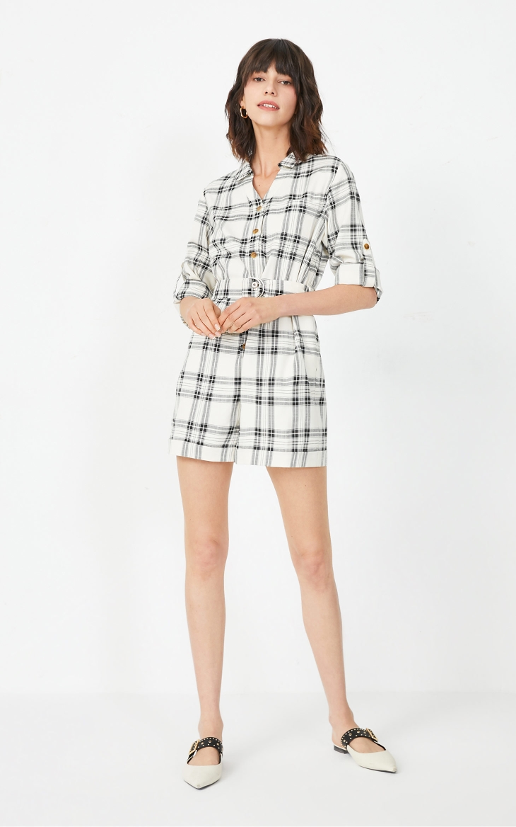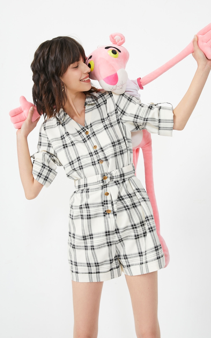 >>Vero Moda2020春夏新款V领格纹连体裤|320378014