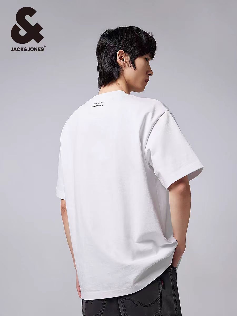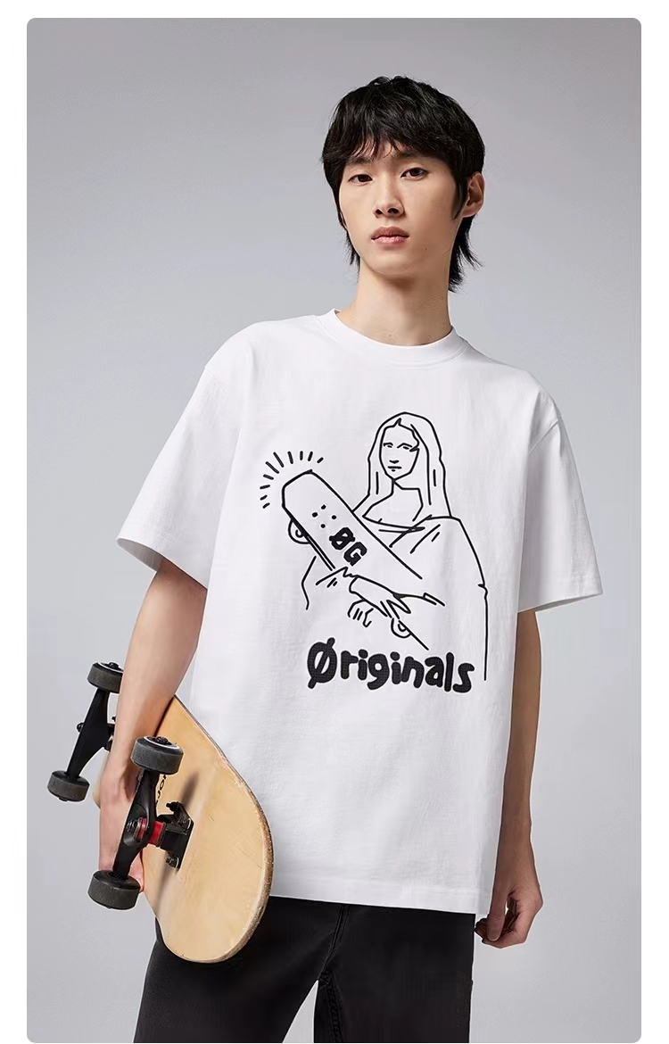 胸前个性胶印图案 背部领口字母刺绣 罗纹圆领 舒适纯棉