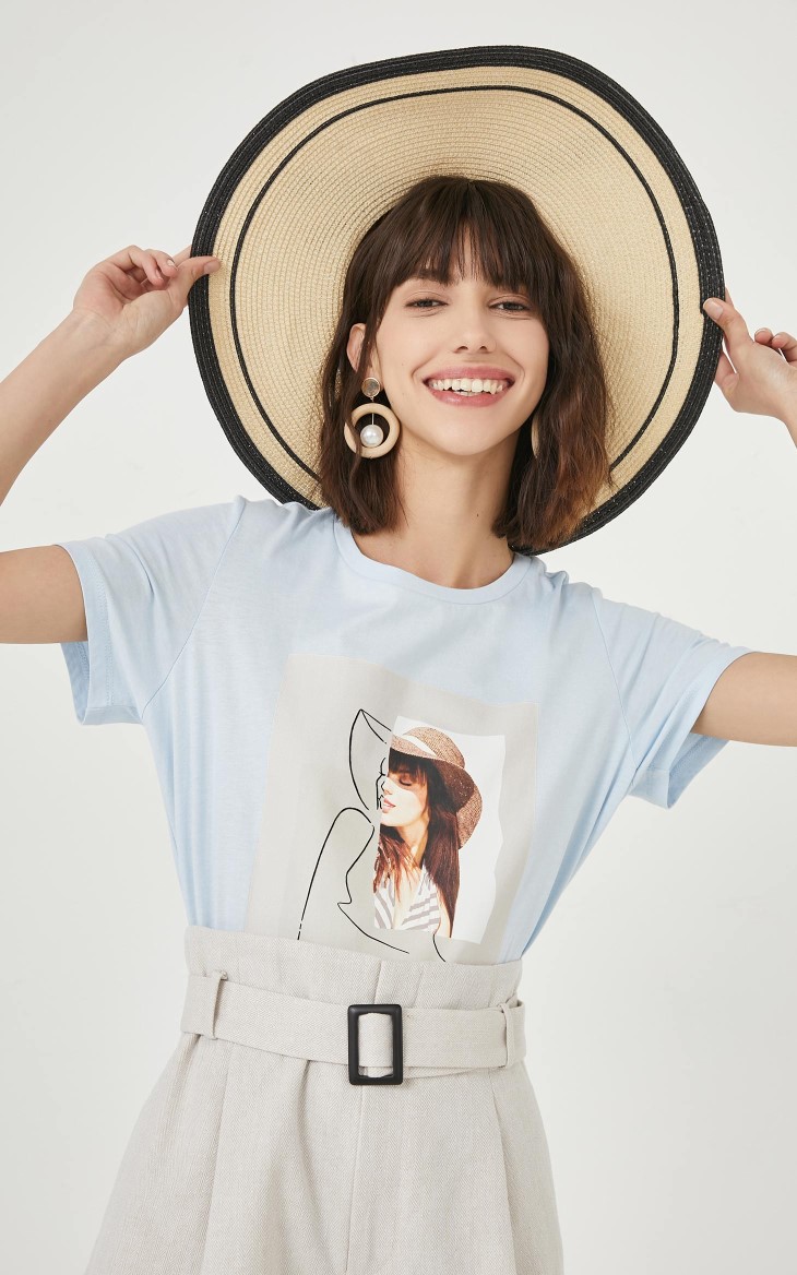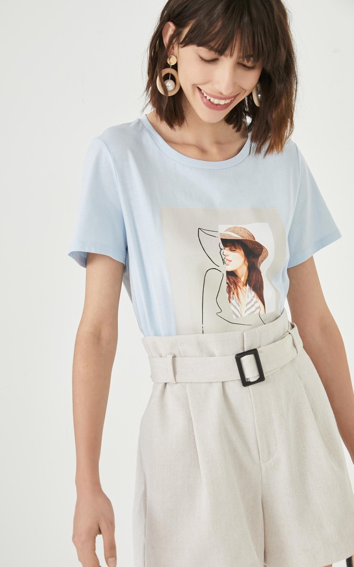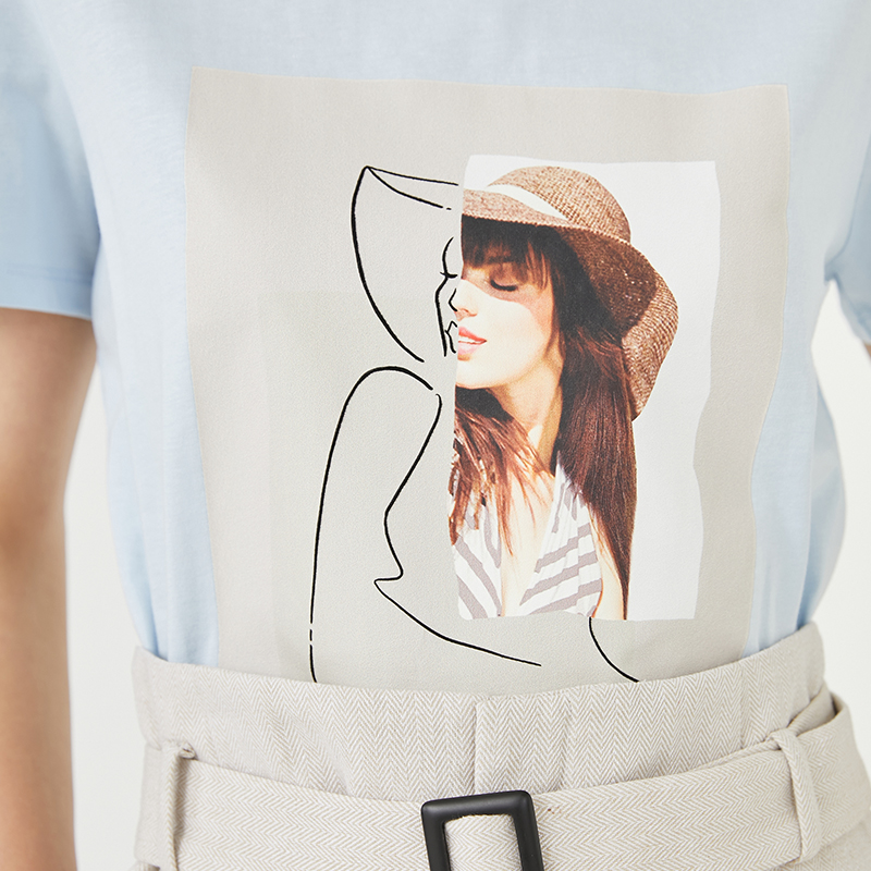 少女装>>Vero Moda2020春夏新款网红印花直筒纯棉短袖T恤女|320301063