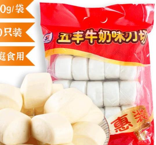9.9元2包,五丰牛奶刀切500克装,一袋约20只,质保期到10月份