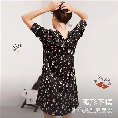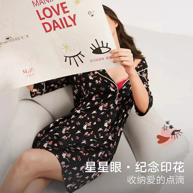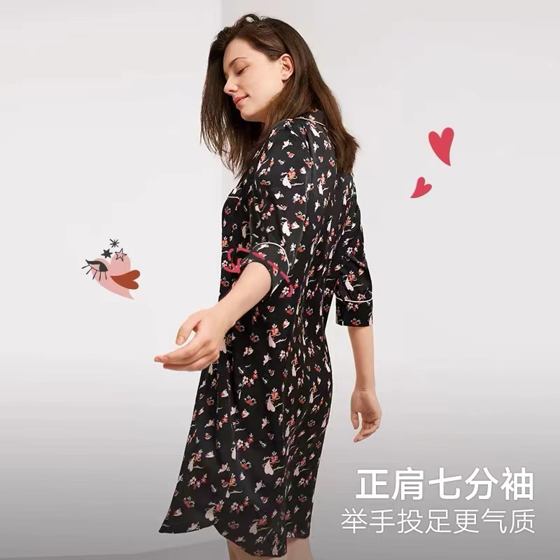 曼妮芬翻领半开七分袖舒服睡裙,丝滑面料,七夕浪漫之旅