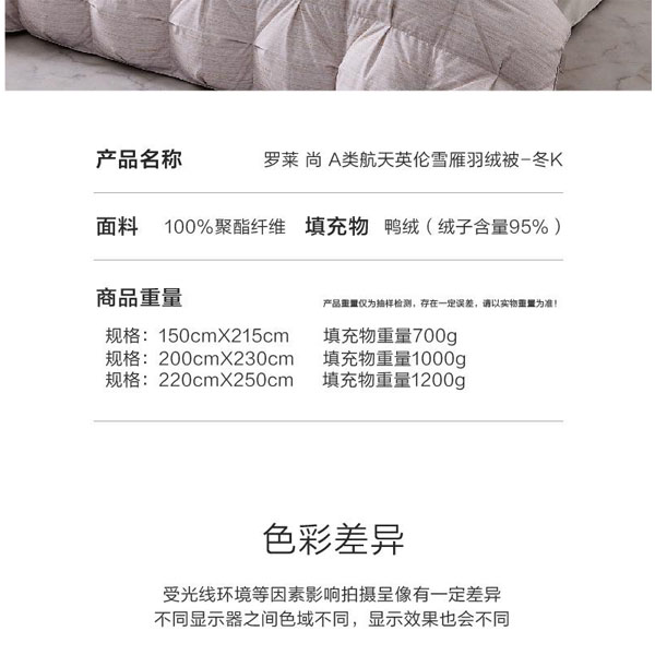 >>罗莱 尚 A类航天英伦雪雁羽绒被-冬