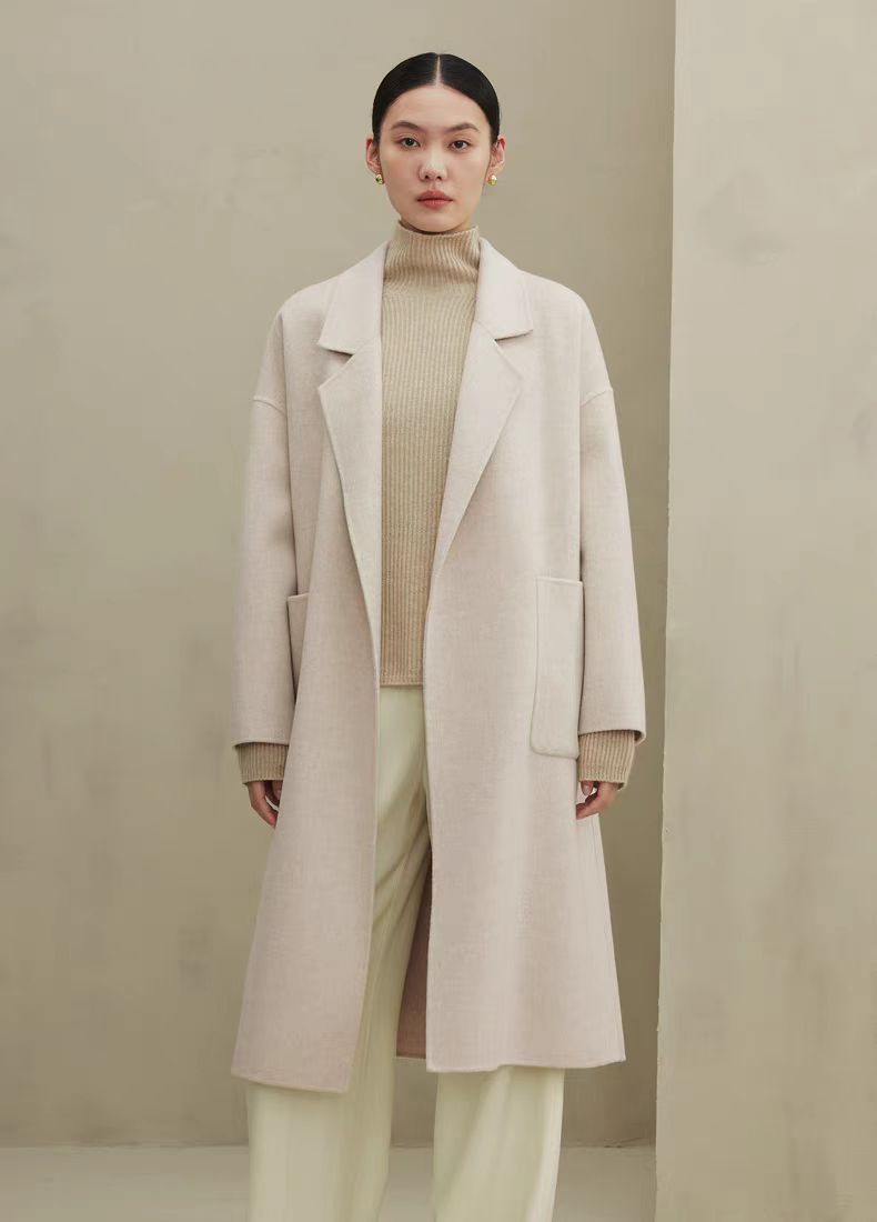 品名:鄂尔多斯1980女短顺呢羊绒大衣 成分:100%羊绒