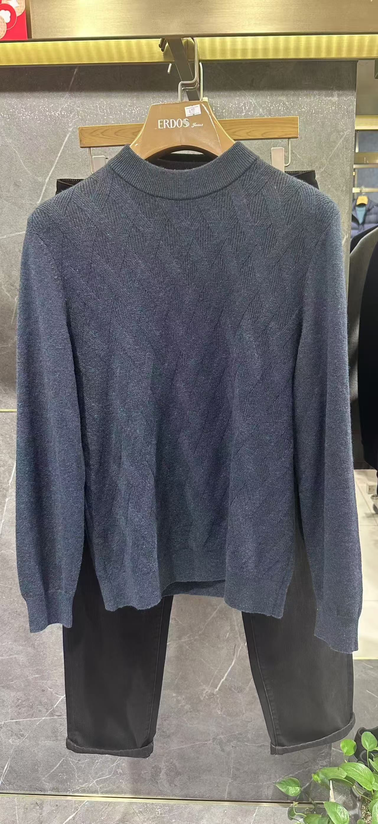 EMZ鄂尔多斯羊毛衫,,菱形格纹,,中领设计,采用灰绿色的色调,给人温暖的感觉,手感细腻柔软