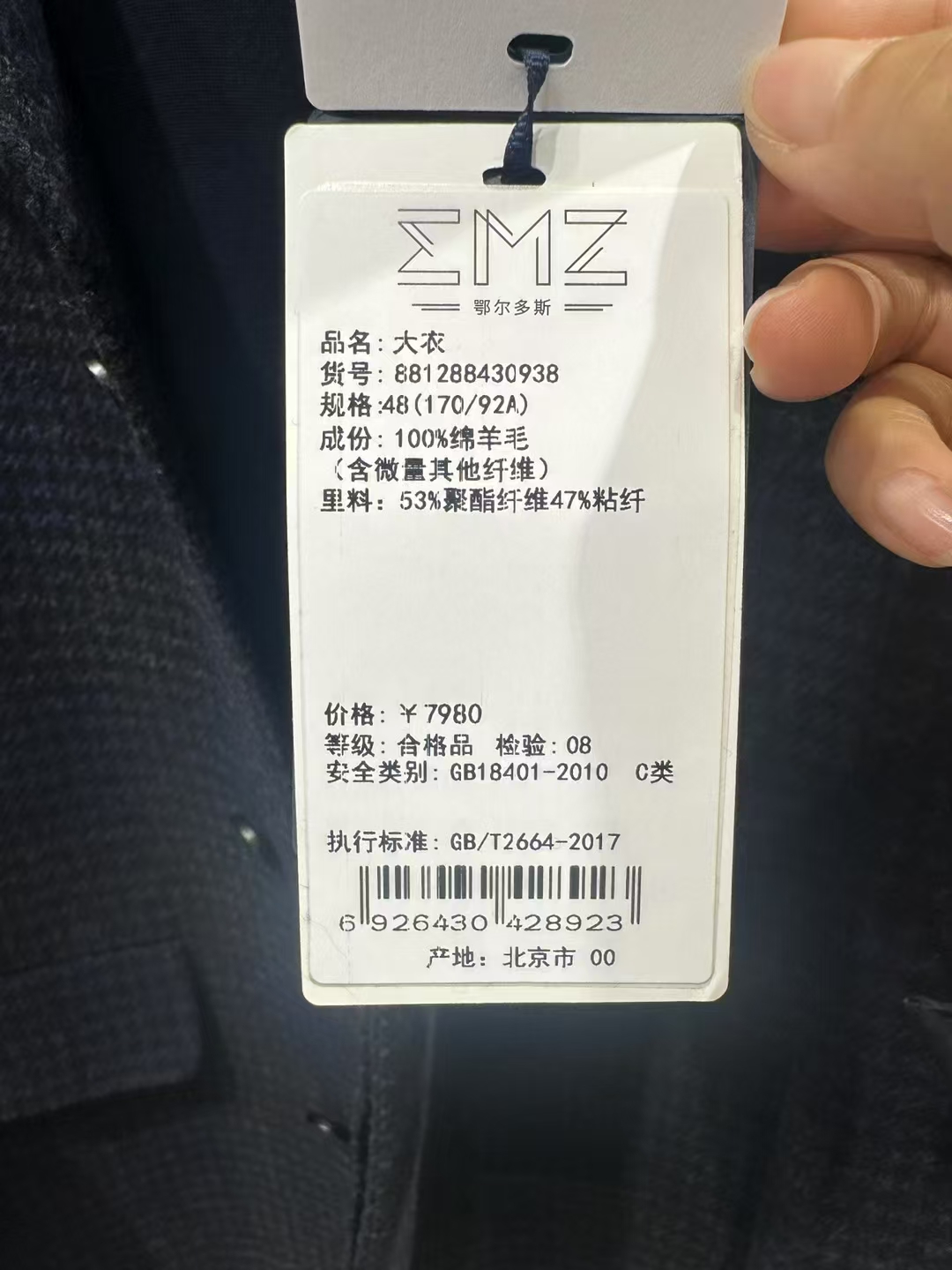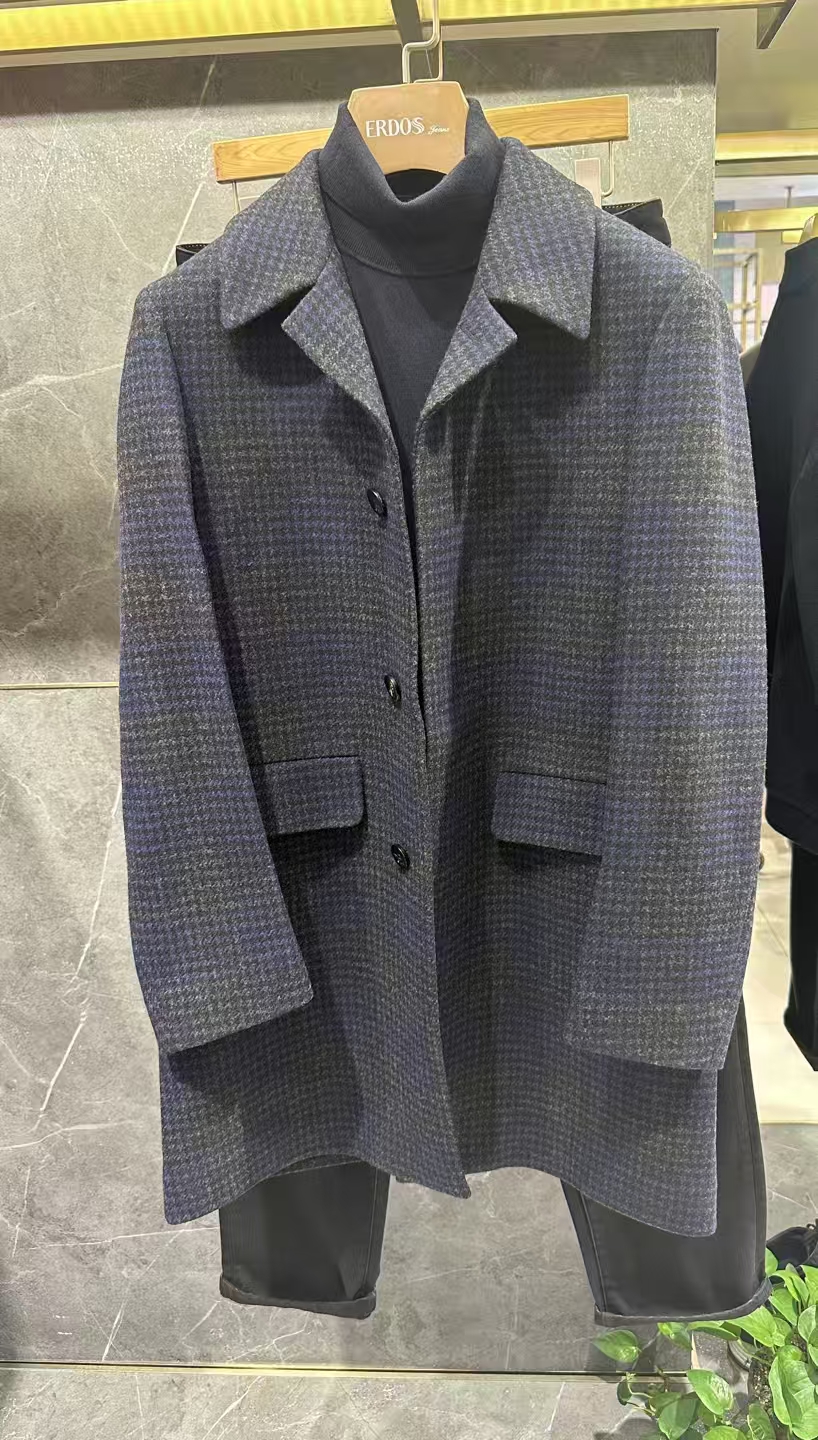 EMZ鄂尔多斯羊毛大衣,采用100%绵羊毛,英伦风格,大口袋设计,整体休闲大气