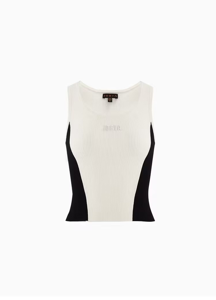 JORYA黑白拼接修身针织背心