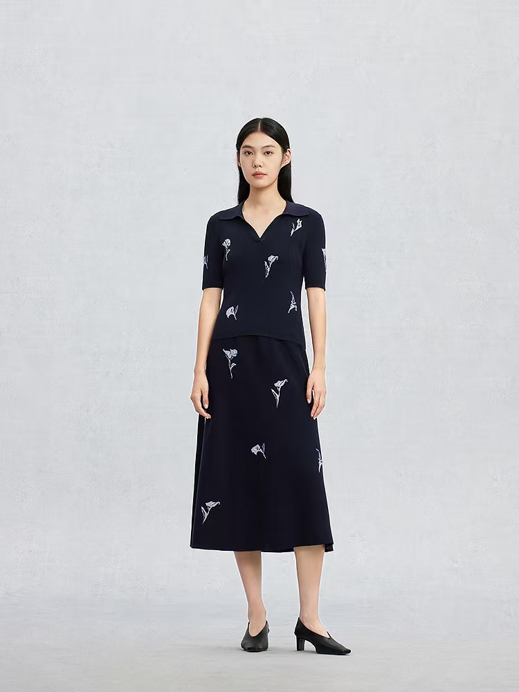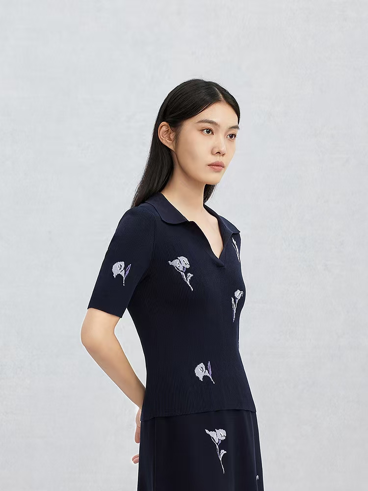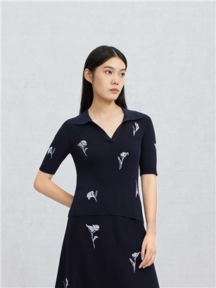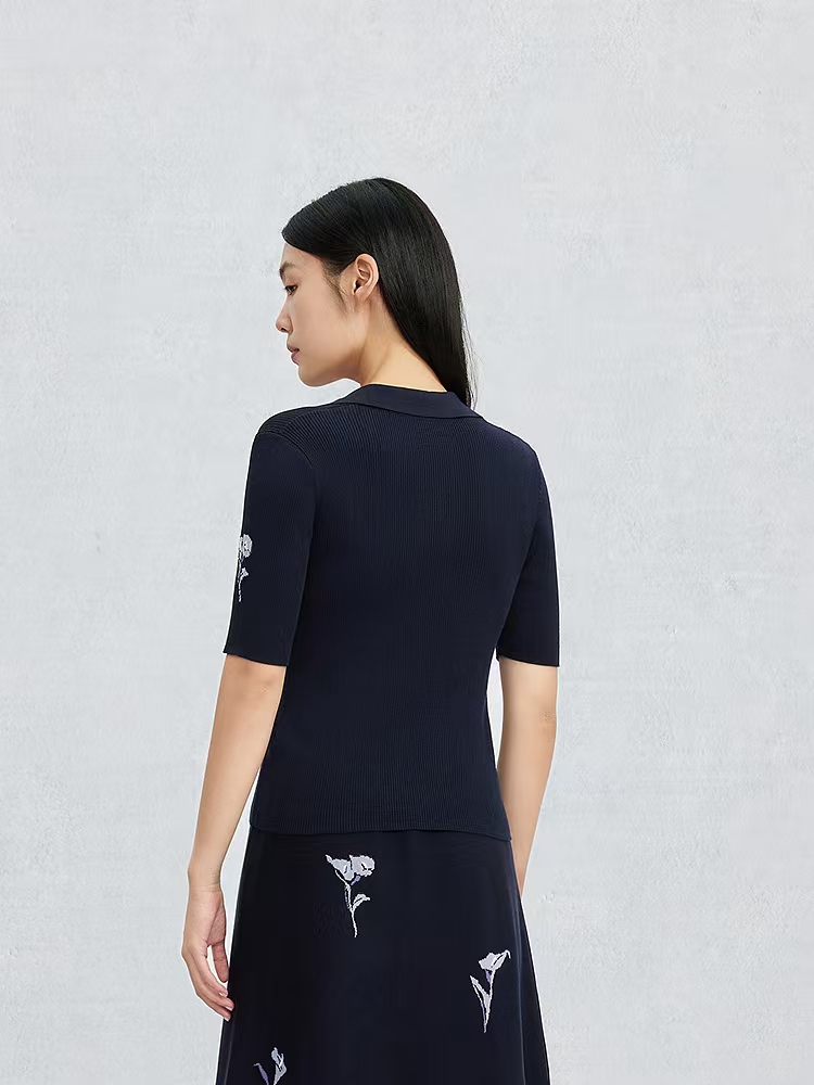 品名:鄂尔多斯1980小翻领半袖女套衫 成分:100%棉