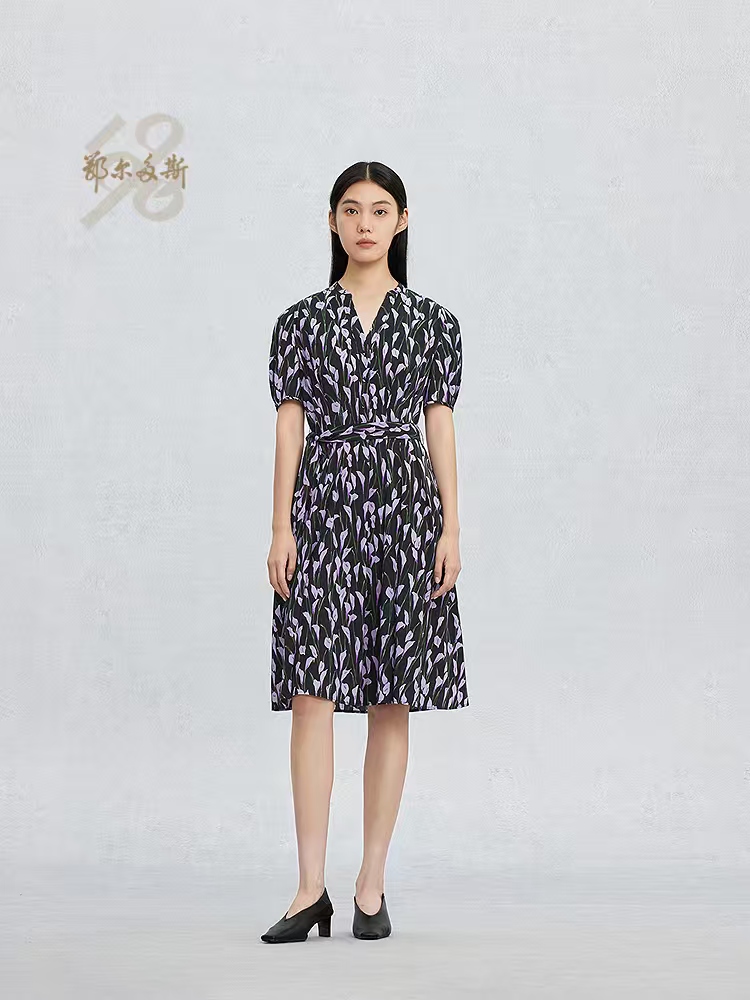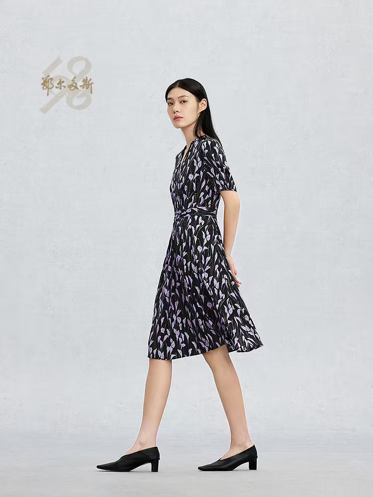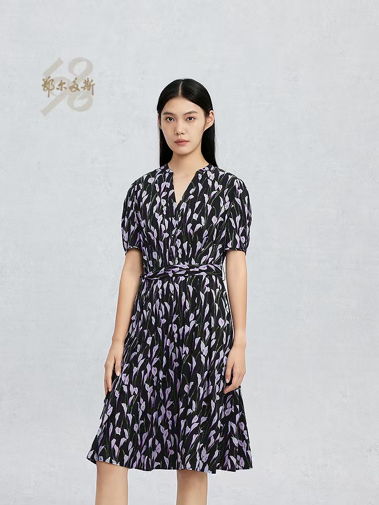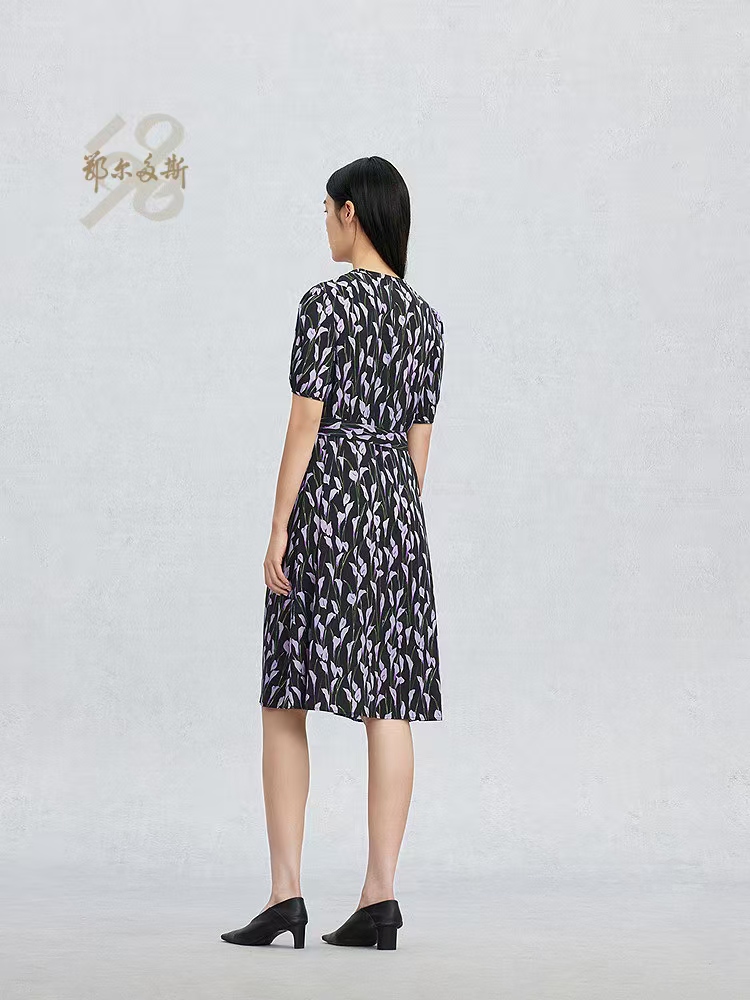 品名:鄂尔多斯1980女连衣裙 成分:87%桑蚕丝13%氨纶