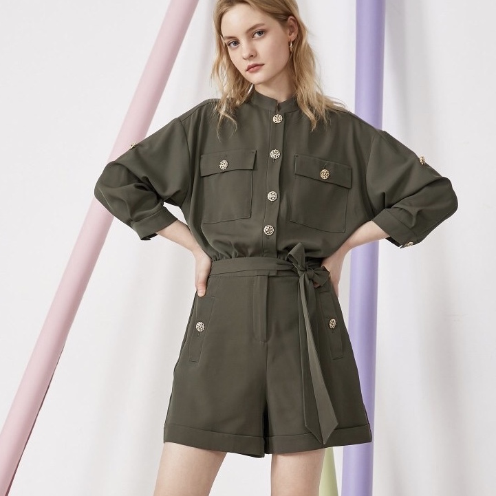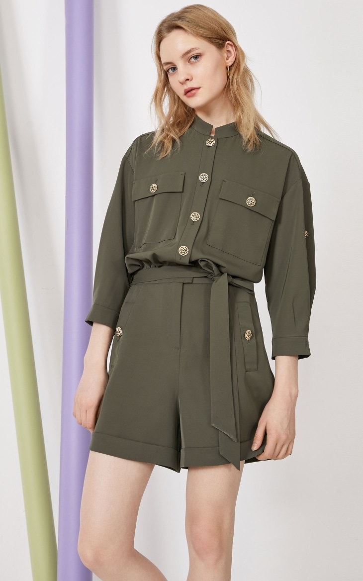 少女装>>Vero Moda2020春夏新款工装风七分袖松紧腰连身短裤女|320278504
