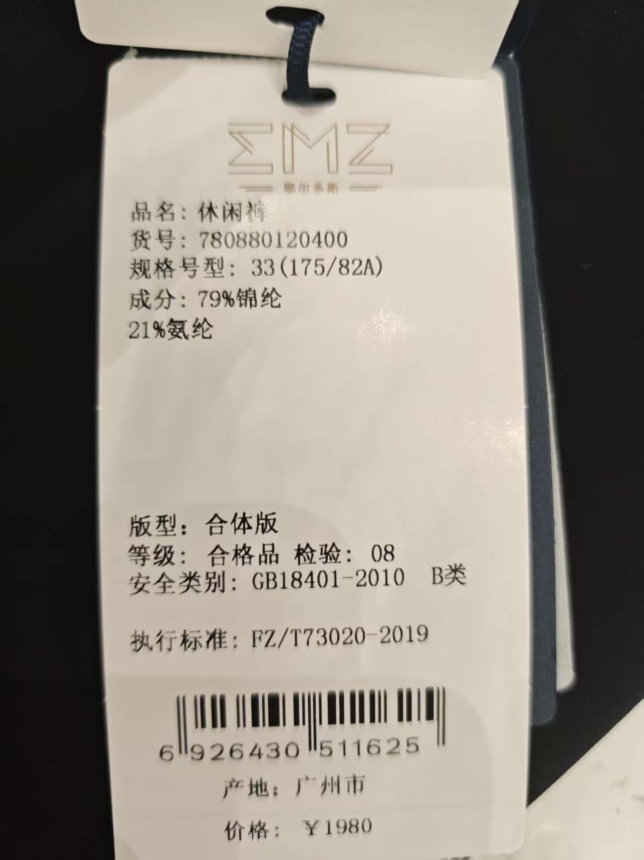 EMZ鄂尔多斯裤子采用立体剪裁,全新裤型再升级,U型档设计不卡挡,不勒腿,腰头内里织带加固加厚,膝部活动不鼓包,久洗如新,弹力面料舒适不紧绷