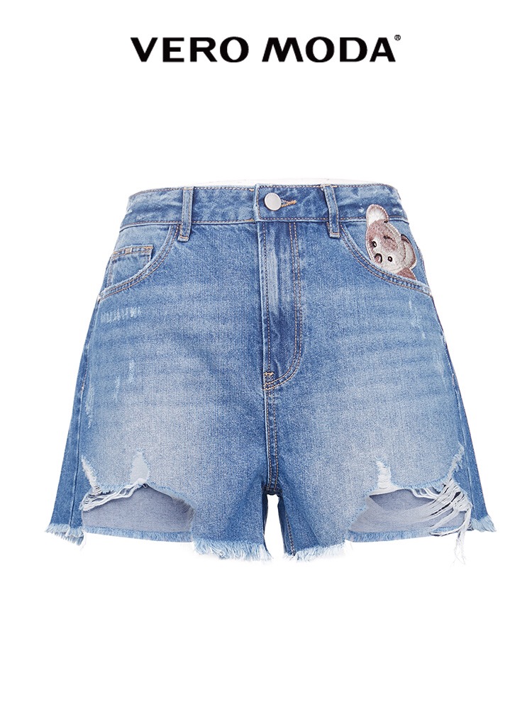 少女装>>Vero Moda2020春夏新款动物刺绣做旧破洞高腰牛仔短裤|320243529