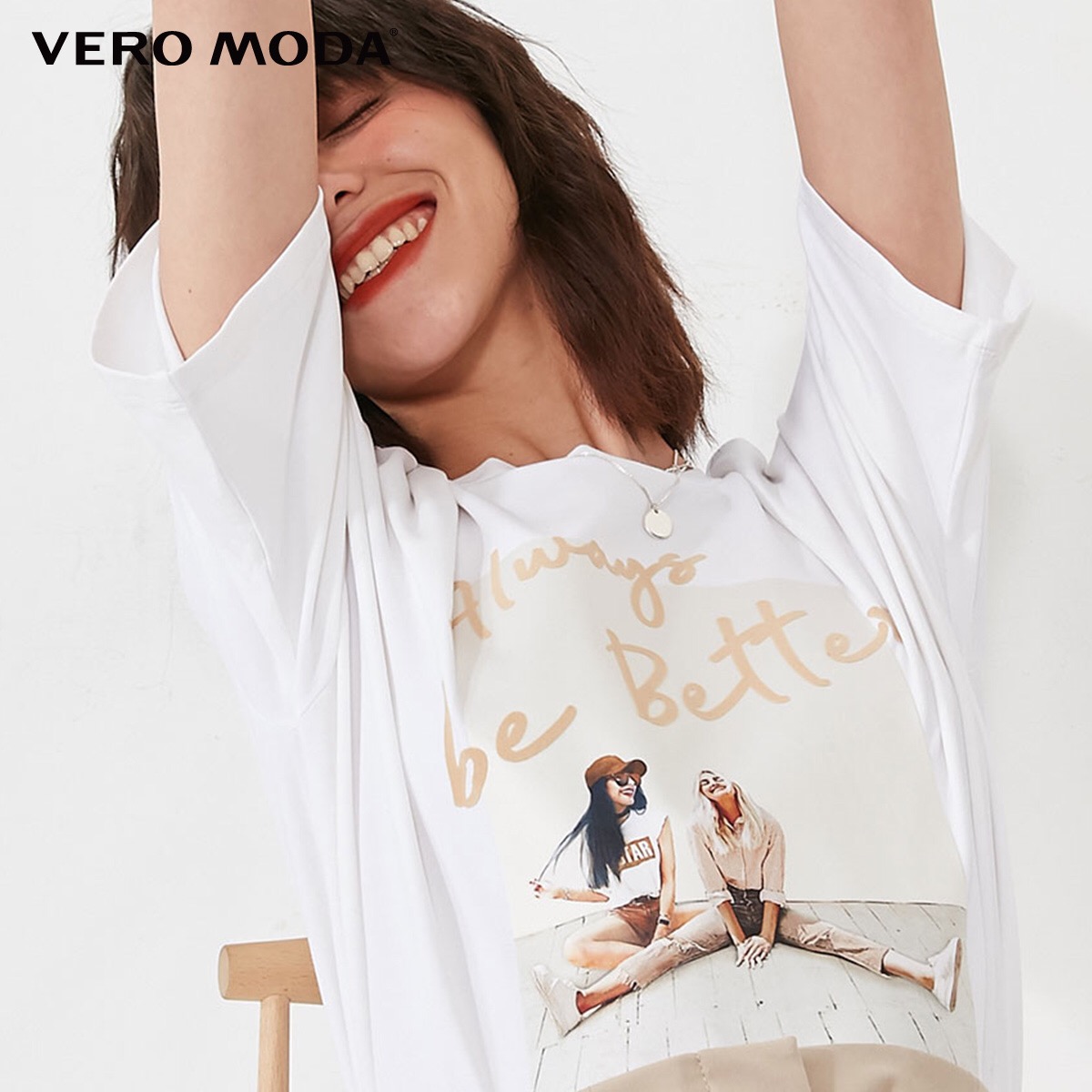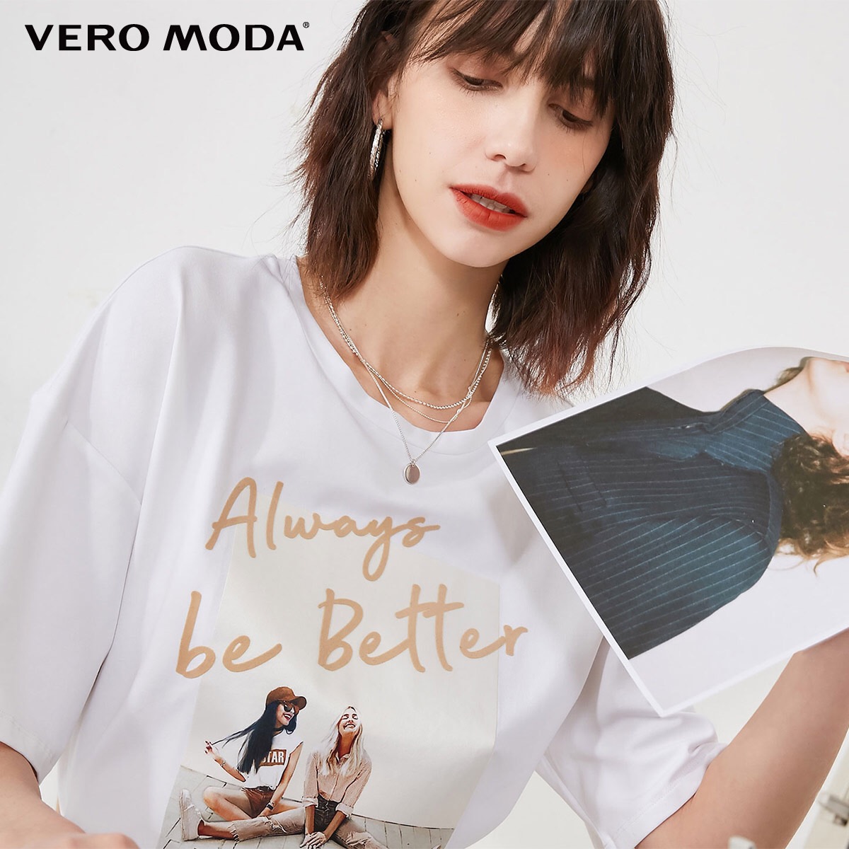 少女装>>Vero Moda2020春夏新款Ins风字母人物图案宽松T恤女|3203T1002