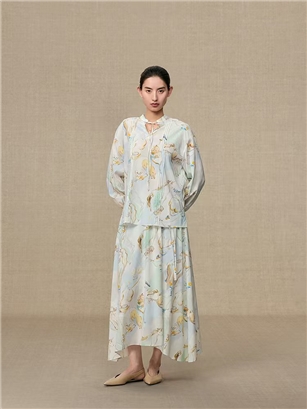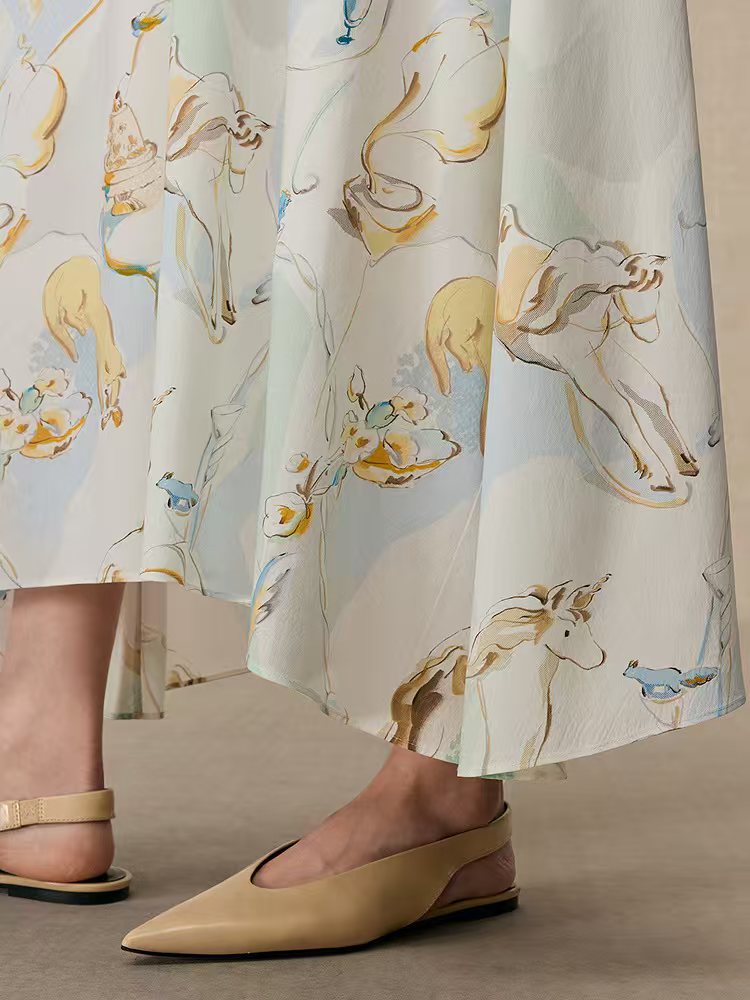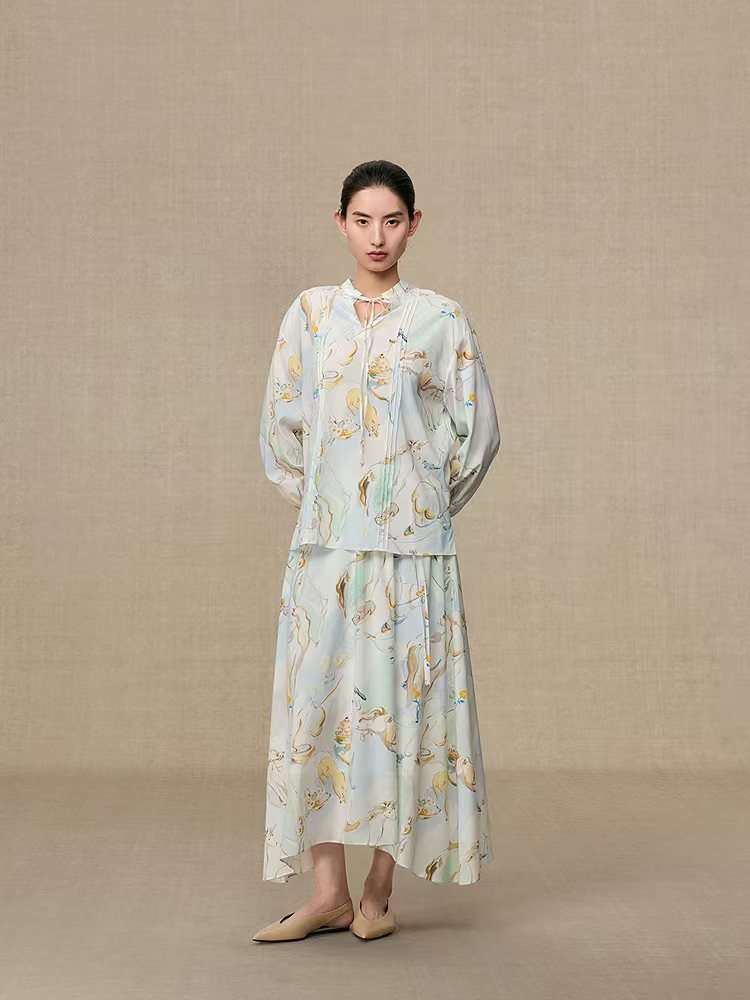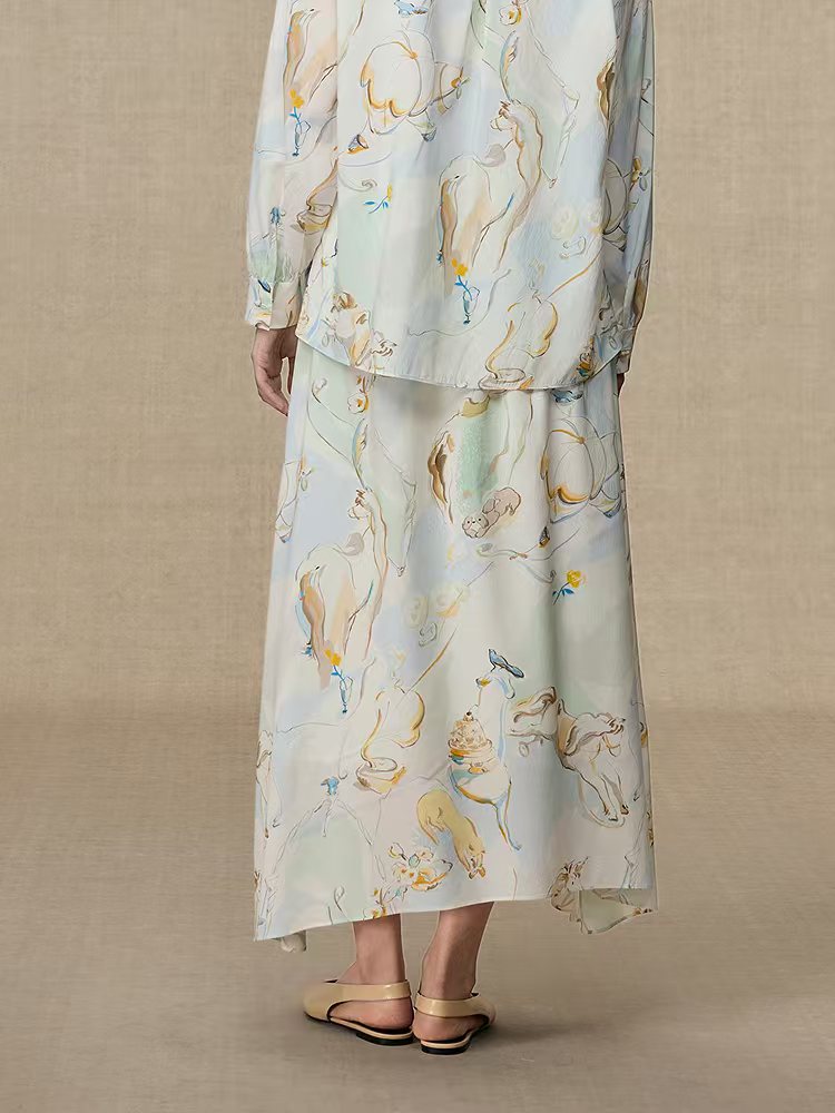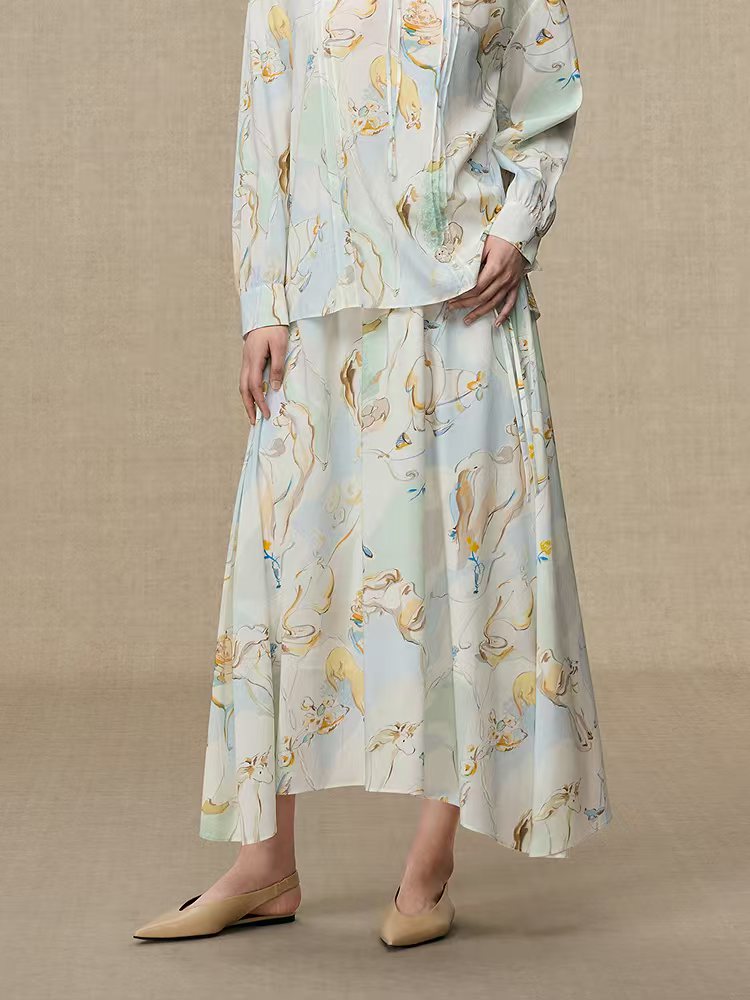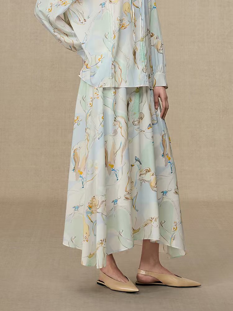 >>鄂尔多斯1980女桑蚕丝弹力电力纺印花半裙