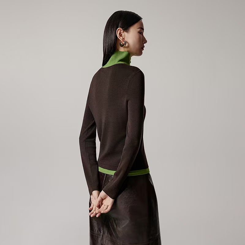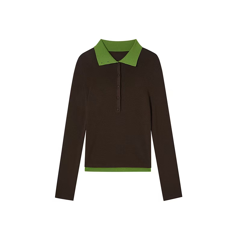 >>朗姿25年秋新款撞色拼接翻领长袖针织衫