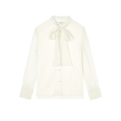 >>朗姿25秋法式荷叶边飘带爆款衬衫通勤气质衬衫上衣