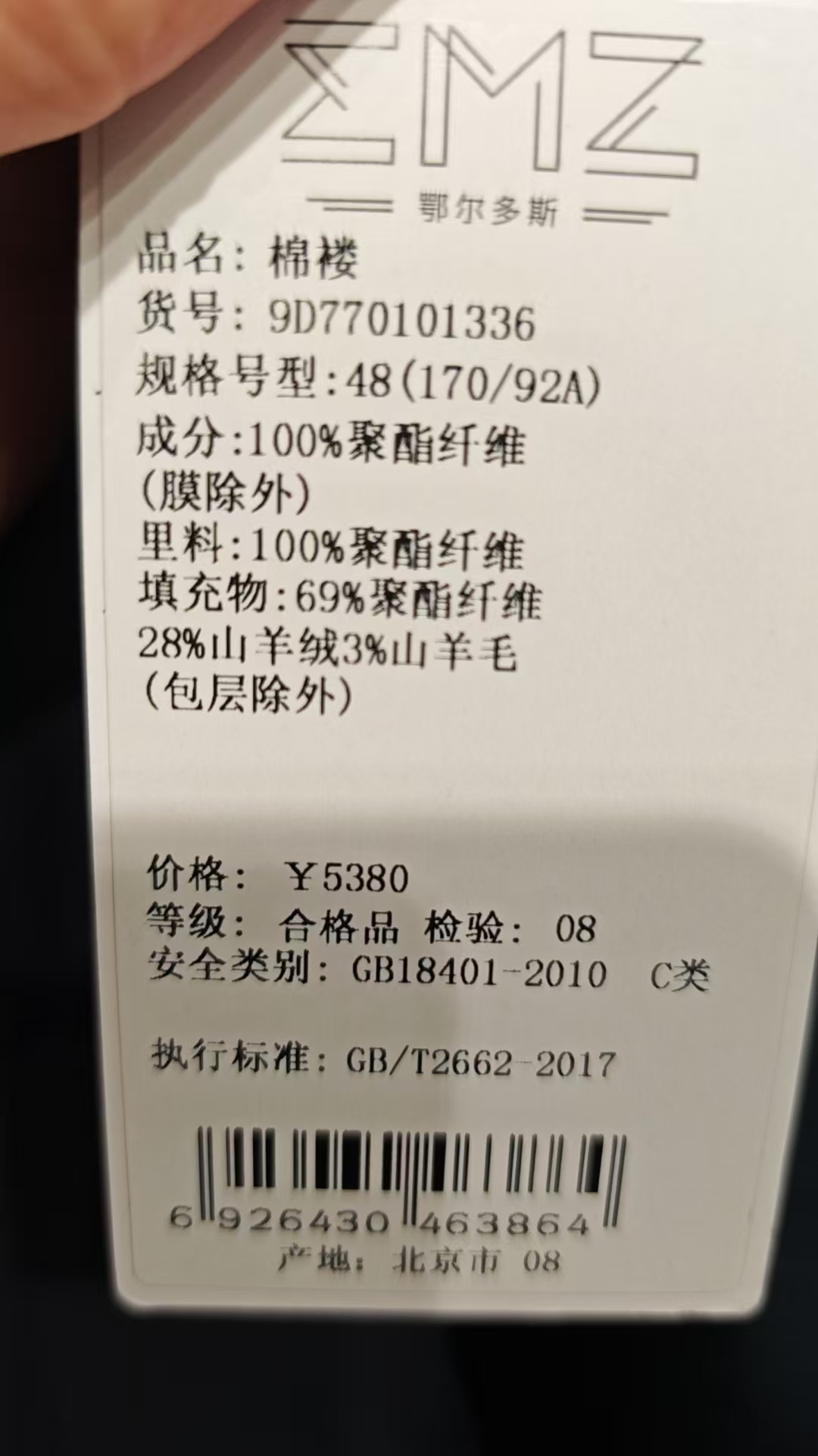 EMZ鄂尔多斯棉袄,干练的翻领款,沉稳大气,低调有内涵,你值得拥有